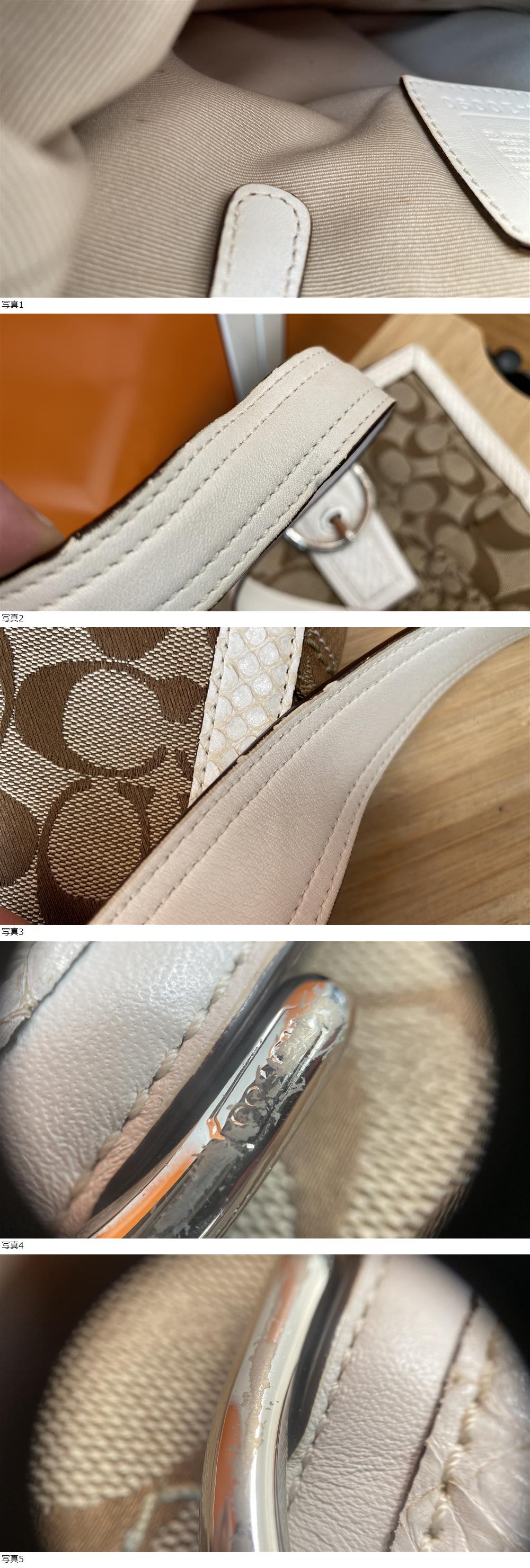 COACH コーチ ショルダーバッグ 肩掛け シグネチャーキャンバス パイソン柄パッチワーク C060-10090 ホワイト ベージュ 收藏