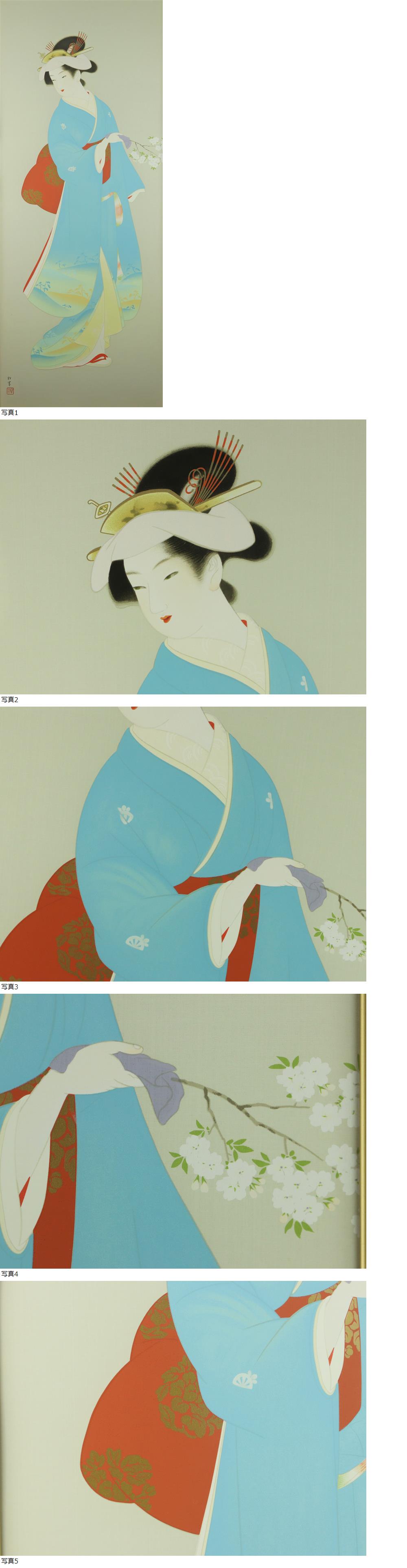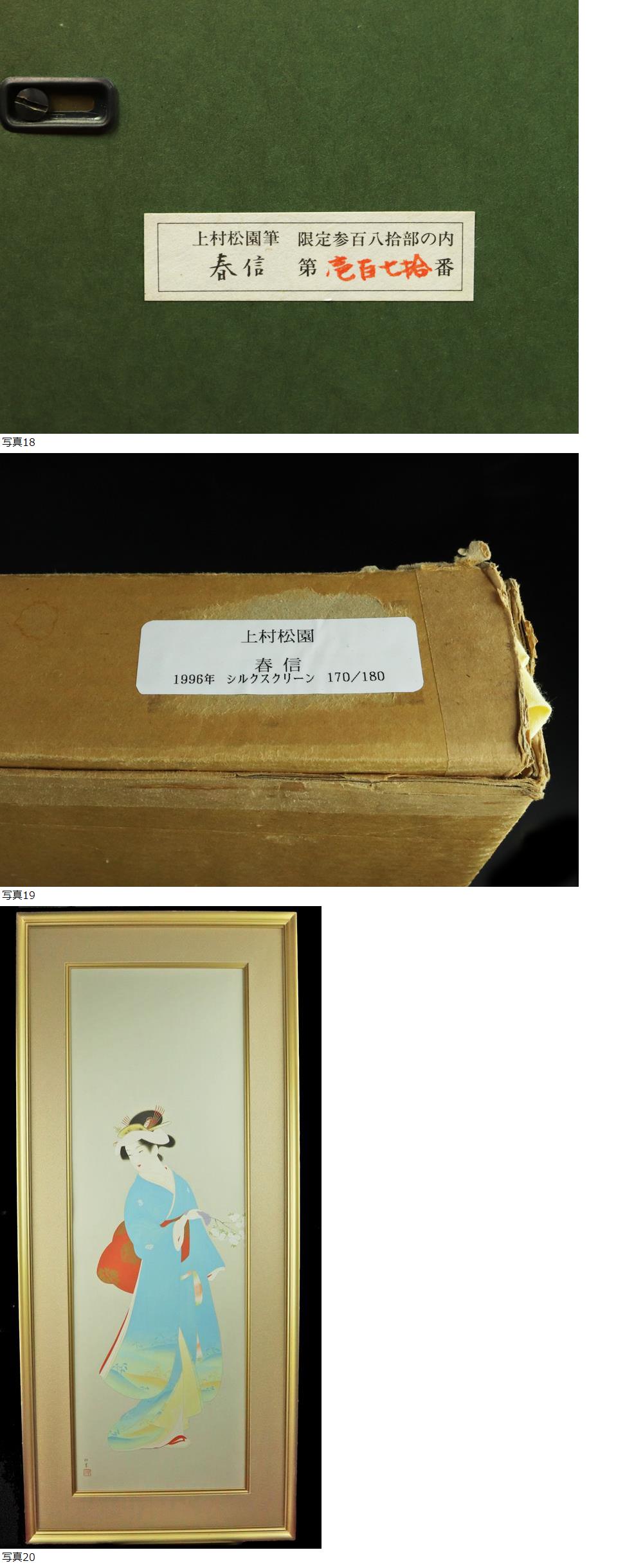 魁◆保証品 上村松園 1996年「春信」 大作 大型画 シルクスクリーン 証明シール 高級額装 タトウ箱 收藏