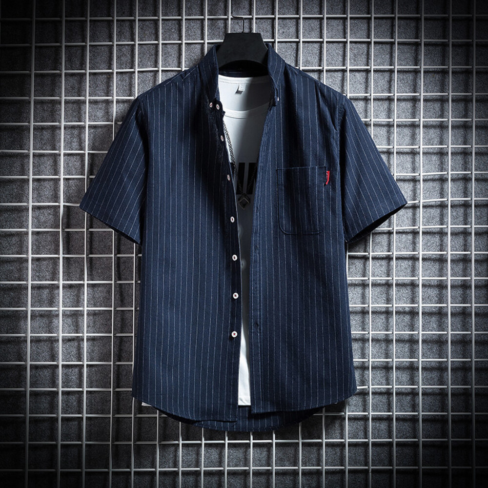 ☆ ネイビー ☆ L ☆ 半袖シャツ メンズ シャツ メンズ 半袖シャツ カジュアルシャツ 半袖 メンズシャツ シンプル ストライプ 收藏