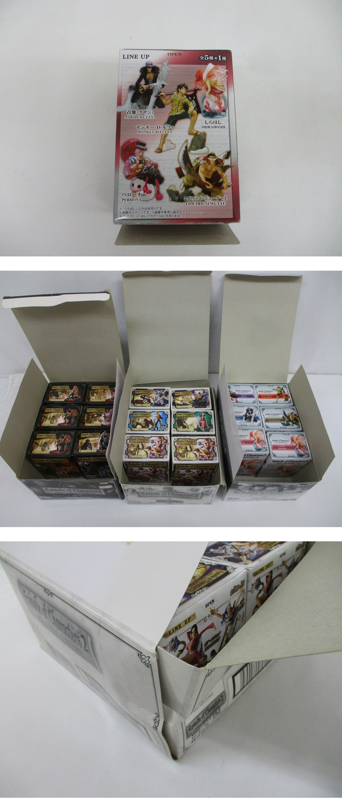 5758P ワンピース エピソード オブ キャラクターズ 1~3 18箱 まとめ バンダイ フィギュア ルフィ エース シャンクス バギー ハンコック 他 收藏