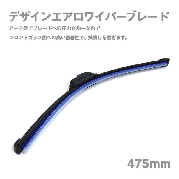 Б 送料無料 デザイン エアロ ワイパーブレード 475mm グラファイト加工 U字フック フロントガラス ビビり音 拭きムラを防止 ブルー 1本 收藏