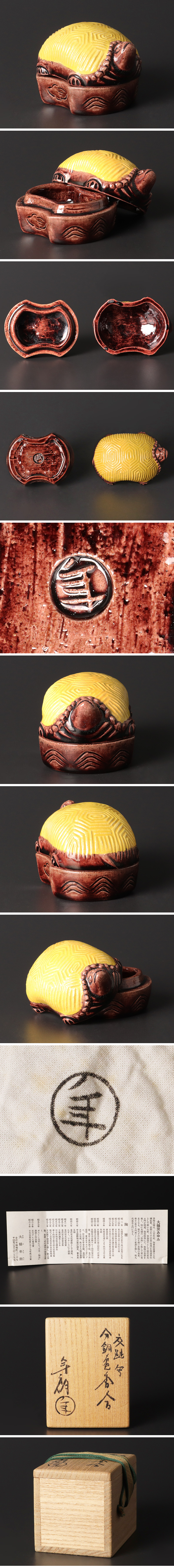 | 【古美味】十代大樋長左衛門(年朗) 交趾写 分銅亀香合 茶道具 保証品 |