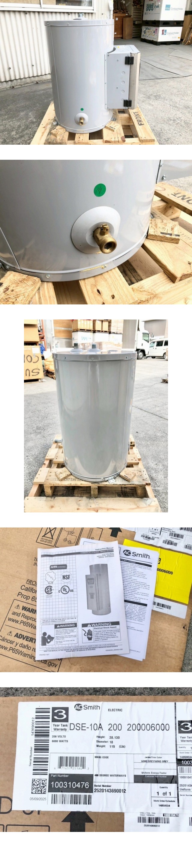 【米軍放出品】未使用品 電気給湯器 電気温水器 6000W タンク容量38L A.O. Smith DSE-10A 200 ☆BB20HM-W#26 收藏