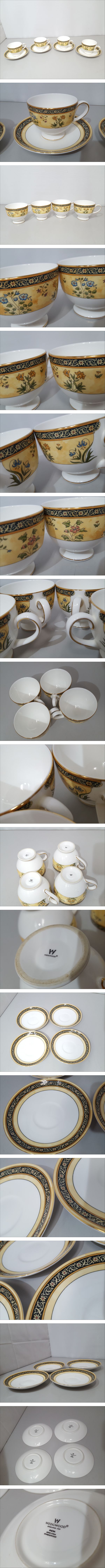 【美品】WEDGWOOD ウェッジウッド INDIA インディア カップ&ソーサー 4客セット/西洋陶器/ブランド洋食器/花柄/金彩/イエロー/LNW31-8 收藏