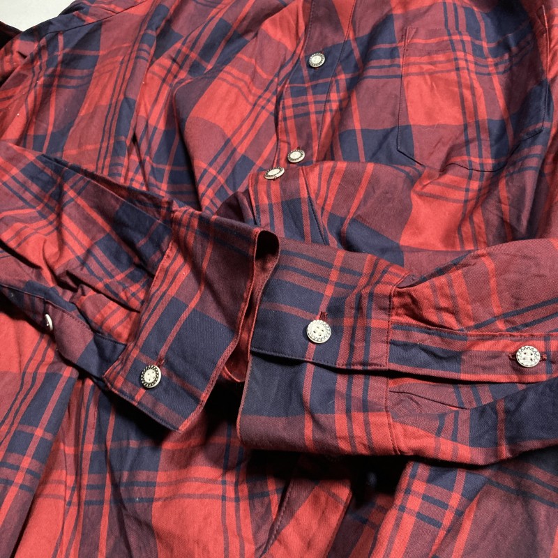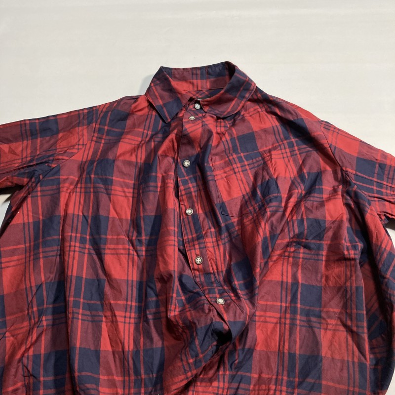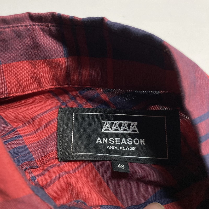 ANREALAGE★super rare★ball check shirt★入手困難★ボール 変形 ビッグシルエット 長袖チェックシャツ アシメ 赤 紺 48 アンリアレイジ 收藏