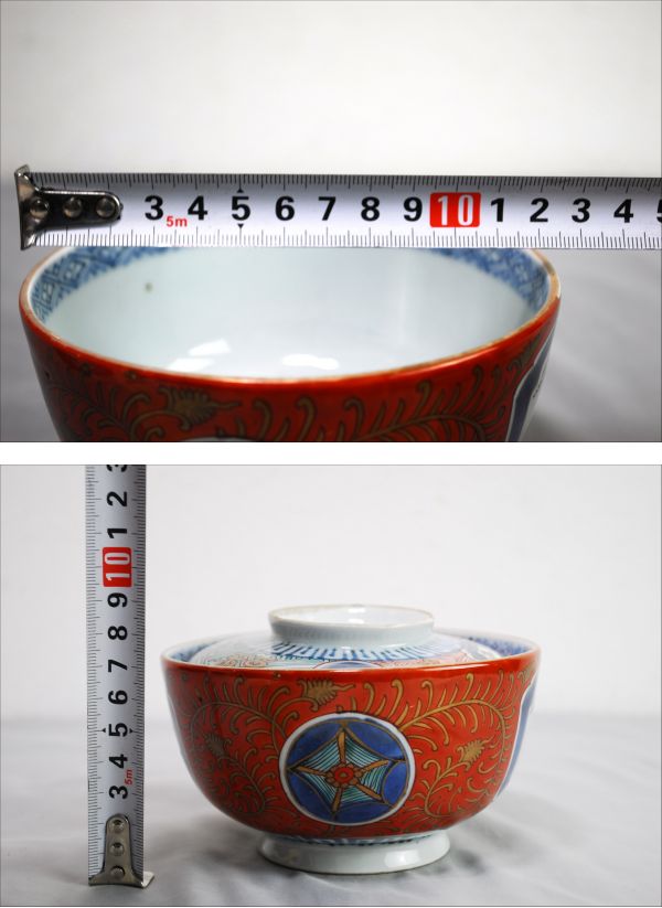 | 商品: 茶碗 蓋付き サイズ: 画像をご参考下さい。 重量: 約358g 家庭用はかりですので誤差はあります。 ※目立つ傷等は無いように思います。蓋の柄を合わせないと蓋の安定性が悪いようです。 商品詳細はわかりません。 画像のものだけです。 「ノークレーム・ノーリターン」を納得された上でのご入札をお願いいたします。 送料は下記に送料表がございますのでご参考下さい。 ※長期保管、経年劣化がある場合もありますので、よく画像にてご判断お願い致します。ご理解いただける方のみ入札お願い致します。 | ||