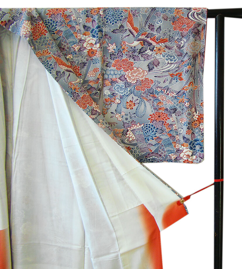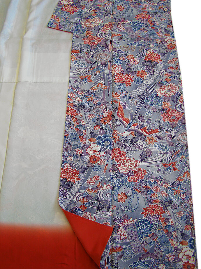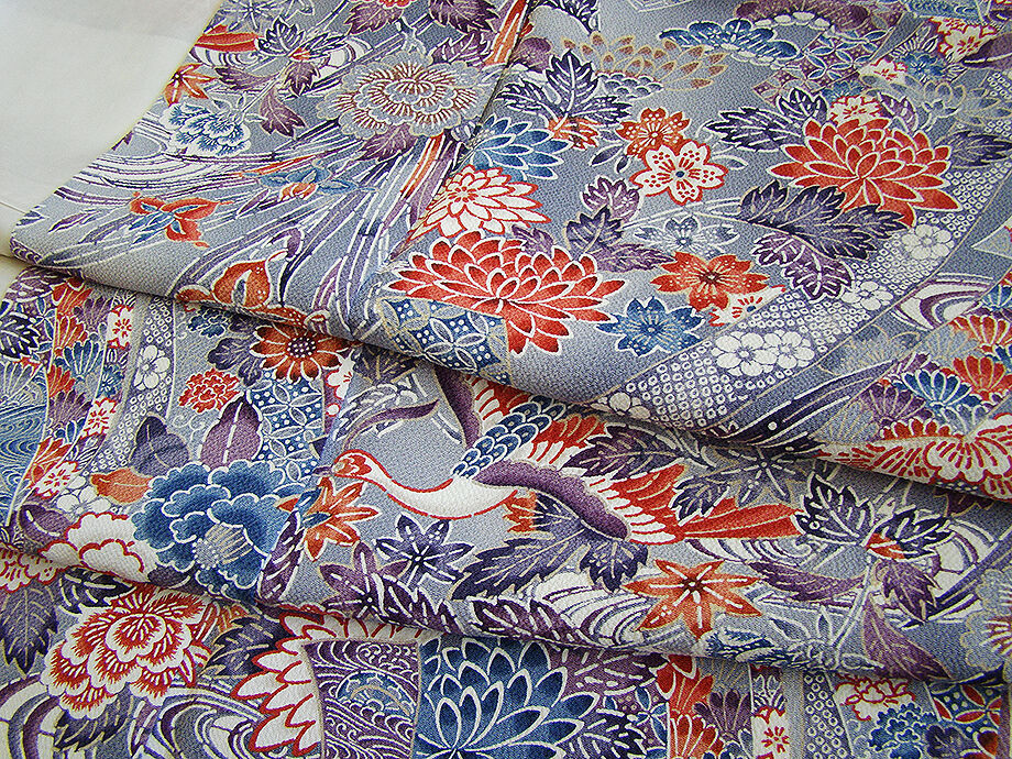 | 商品説明 | こちらのお品は「袷」ですので10月から5月までお召頂ければと思います。 しなやかで柔らかなぽってりとした手触りの着心地良い重めのちりめん地の生地、 桔梗鼠色地に白、朱赤、紫、藍色等の花鳥柄の染柄、 八掛は朱色(正絹)、幅広い年代の方にお召頂けます。 |