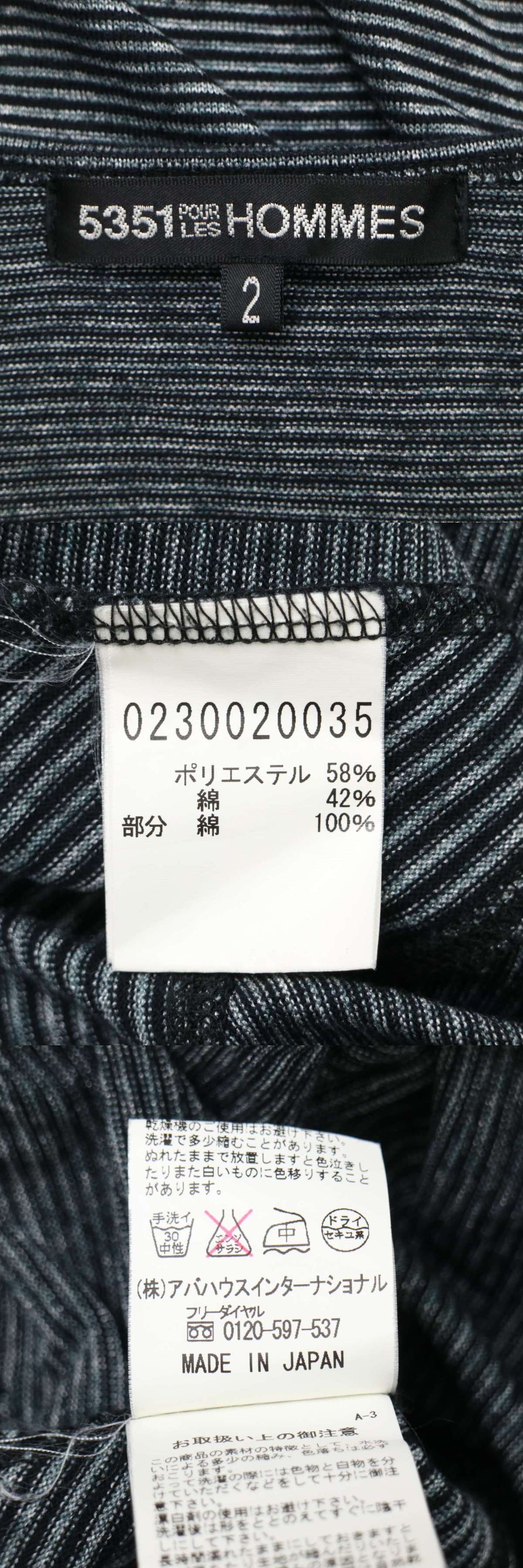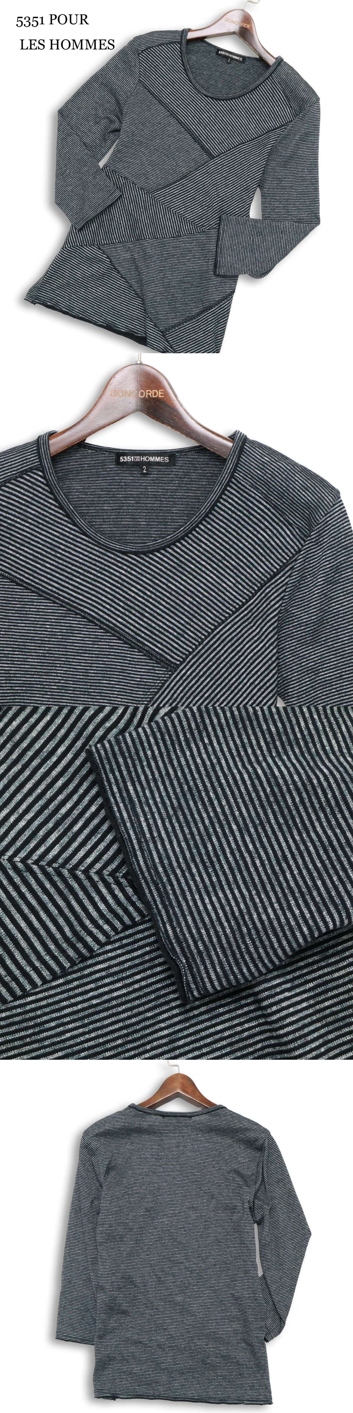 5351 POUR LES HOMMES 5351プールオム 春夏★ 7分袖 切替 ボーダー スリム カットソー Tシャツ Sz.2 メンズ 日本製 收藏
