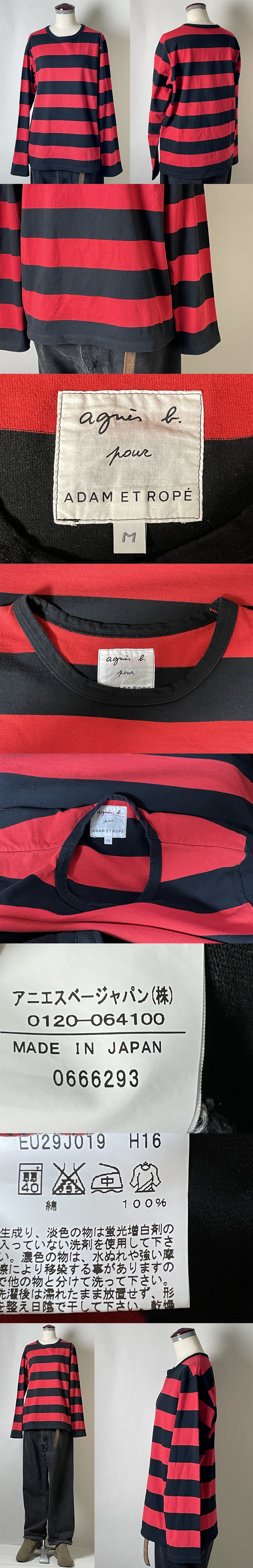 【廃盤モデル 名作コラボ 日本製】agnes b. pour ADAM ET ROPE アニエスベー プール アダムエロペ EU29J019 H16 (J019)ボーダー Tシャツ M 收藏