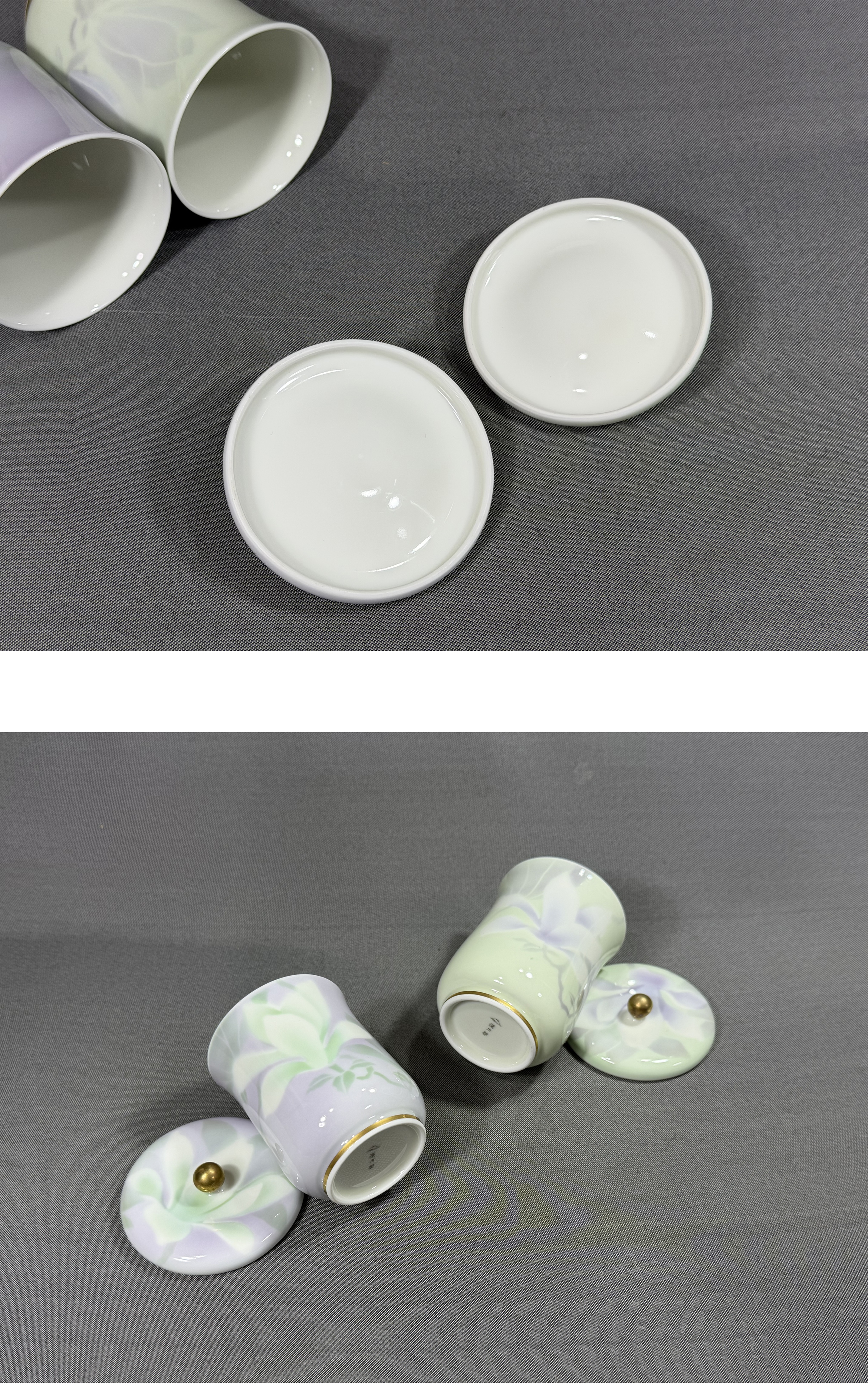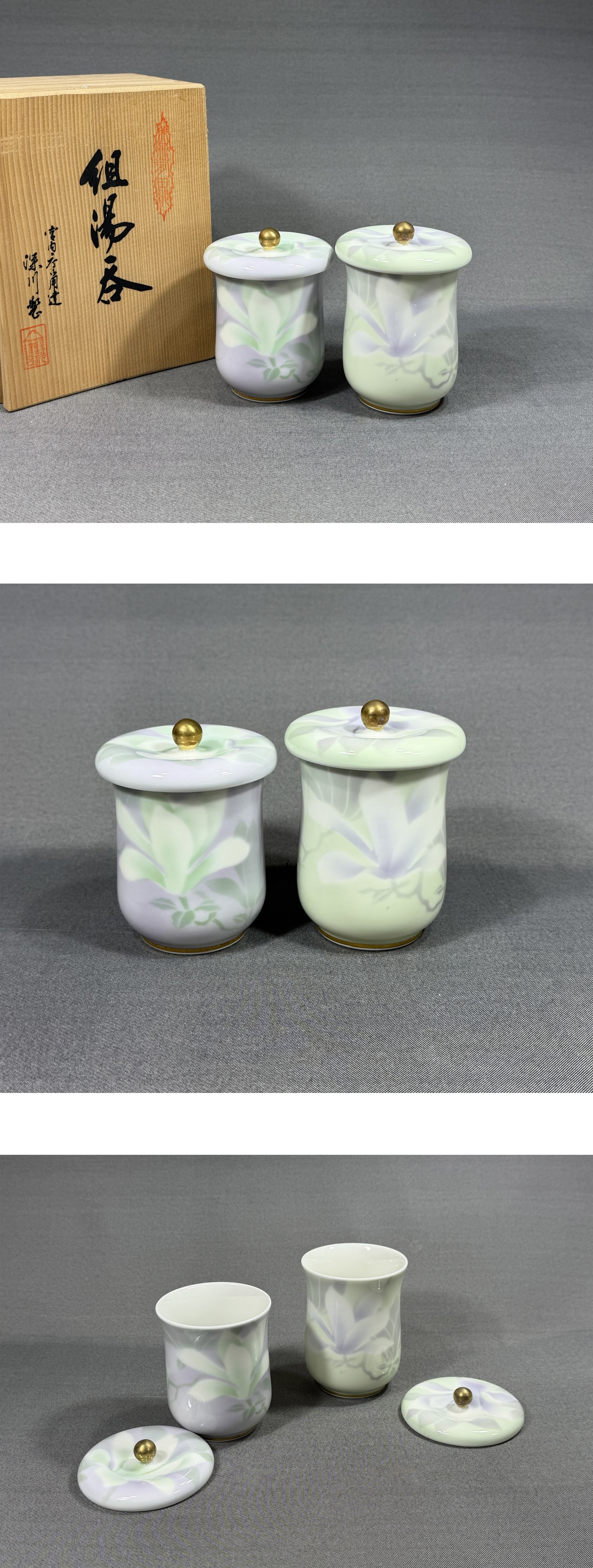 【風車】宮内庁御用達 深川製磁 百合絵 組湯呑 金彩 茶道具 有田焼 美品▲共箱 在銘▲煎茶道具 湯呑 茶器 收藏