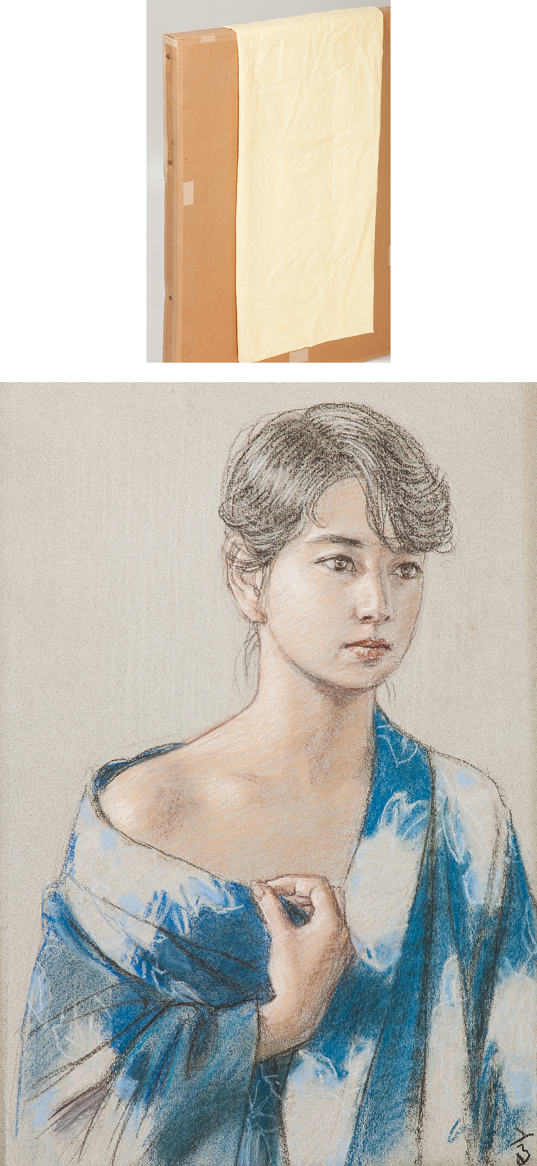 【1on1】真作 高塚省吾 『浴衣』 パステル 10号 額装 ギャラリーオブジェシール ■ 美人画の第一人者 希少作品 收藏