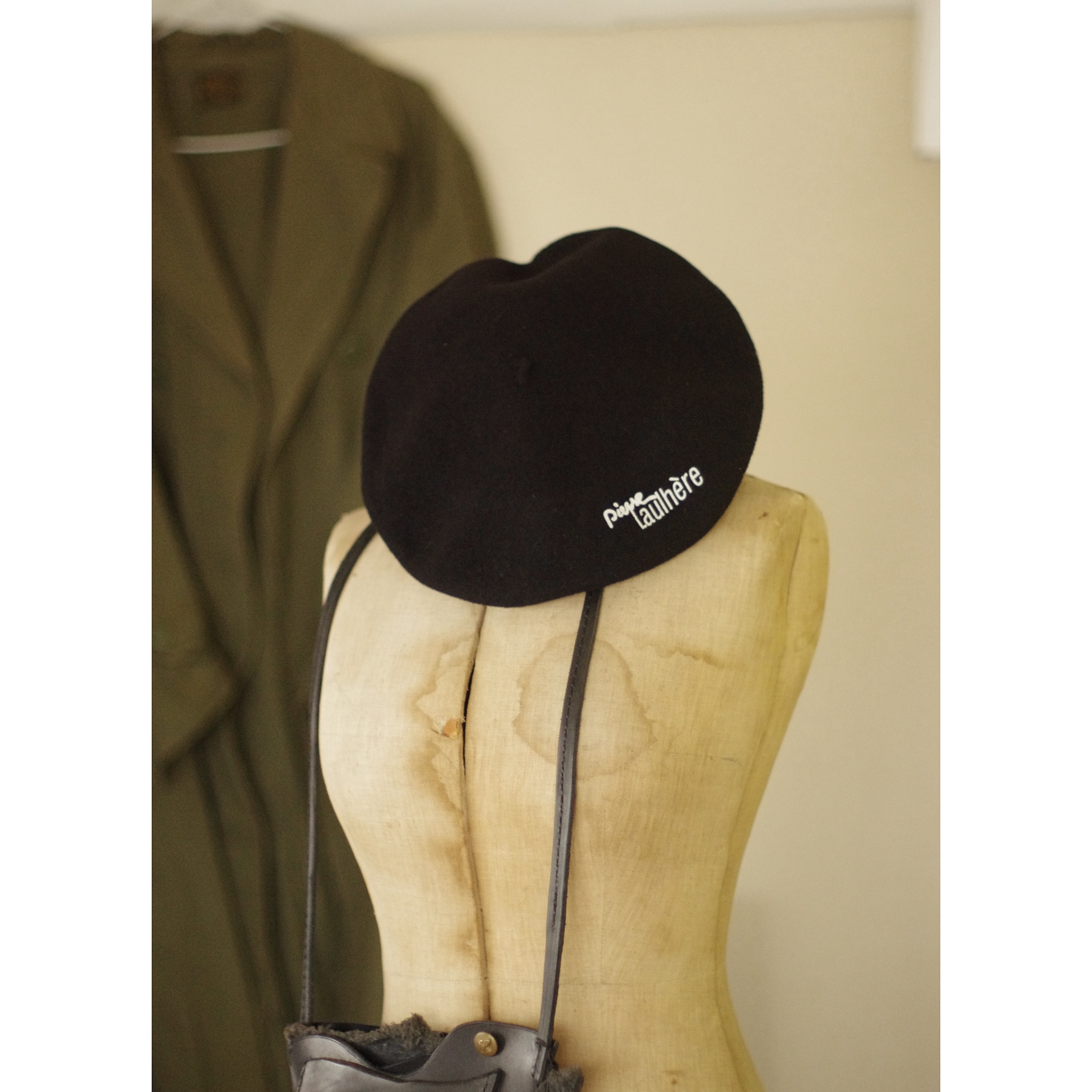 フランス 1980-90s Pierre LAULHERE バスク ベレー帽 55cm 黒 ウール 帽子 ハット キャップ 古着 骨董 ヴィンテージ アンティーク 收藏