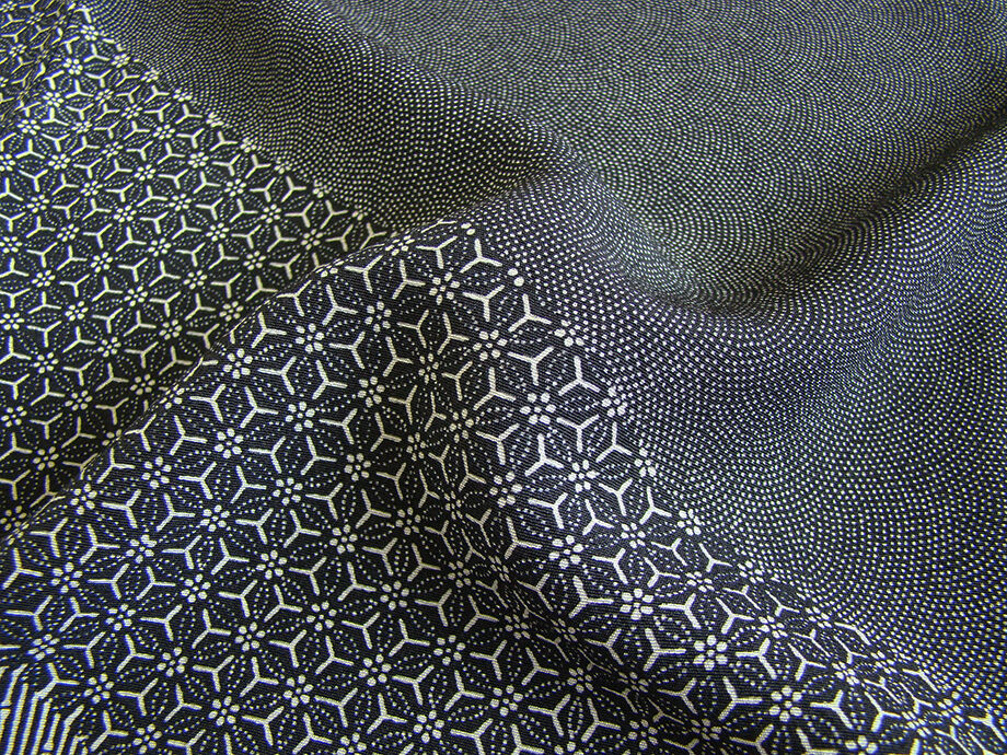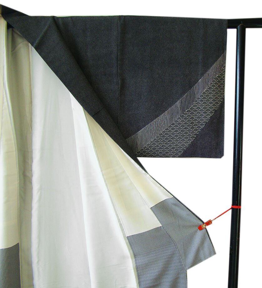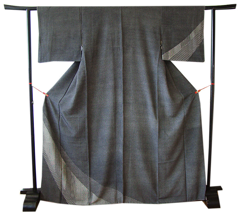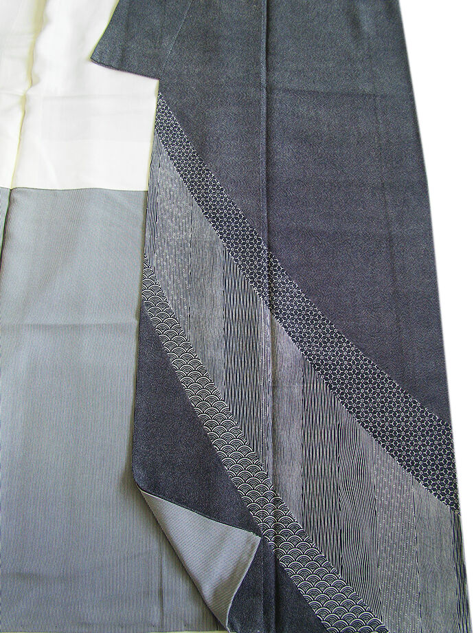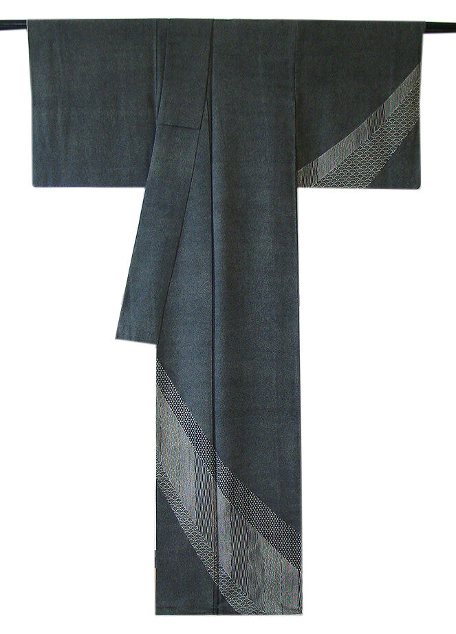 | 商品説明 | こちらのお品は「袷」でございますので、10月~5月までお召頂ければと思います。 とてもしなやかで柔らかな手触りのさらりとした着心地良い重めの極上一越地の生地、 黒色地に灰白色の極め細やかな鮫柄に裾にかけて青海波、竹縞、よろけ縞等の江戸小紋の染柄、 八掛は灰白色とグレー色の万筋の染柄(正絹)、幅広い年代の方にお召し頂けます。 |