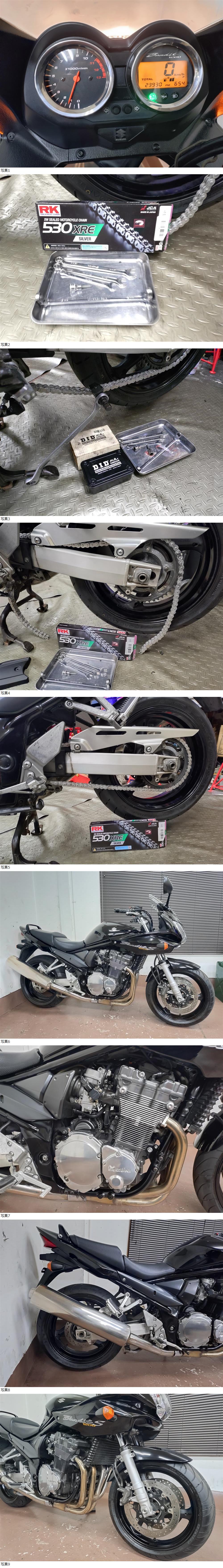 | 商品説明 | ★☆出品車両の拡大画像は冒頭または文末に掲載しております★☆ アクセス頂き有難うございます。 商品説明文を最後までご熟読頂き、オークションへのご参加およびお取引を、宜しくお願い申し上げます。 -------------------- ●車両基本情報 ・初年度登録年月:平成18年6月 ・型式:BC-GV79A 【2006年ファイナルモデル/コード:GSF1200SK6】 ・車台番号:GV79A-100***(下3桁伏字) ・メーター表示距離:23,930km(実走行距離) 過去記載距離 21,400km/令和6年 18,600㎞/令和4年 ・キー:純正共通1本+社外メットキー1本 ・エンジン始動:○ ・セルまたはキックスタート:○ ・バッテリー残量:○ ●【当方にて『走行テスト』実施済み】 ⇒正常制動・正常ミッション入力ほか確認済み ●保安部品の作動状態 ・ヘッドライトHI/LOW切替:○ ・ウインカー:○ ・ホーン:○ ・テールランプ:○ ・ブレーキランプ前後:○ ●ガソリンタンク内部の状態:目立つような内部サビは特に無し ●エンジンの状態 ・エンジン総合状態:年式/距離相応の状況 (特に大きな問題の無い一般中古車レベル) ⇒気になる際は必ず『現車確認』をお願い致します。 ・オイル漏れ箇所:- ・その他特記事項:顕著なオイル漏れ箇所は特に無し ●足回りの状態 ・ステムベアリングの状態:現状は問題なし ・フロントフォーク:左側小滲み確認/ダストシールひび左右小程度 (⇒当方にて簡易的な目止め処理のみ実施) ・前後タイヤ残量:F 9分山 R 9分山 ⇒『前後タイヤほぼ新品(バリ山)状態!』 ~銘柄=2025年製造のダンロップ製ロードスマートⅢ~ ●外装の状態 ・ガソリンタンク凹み:目立つような凹み箇所は特に無し ・外観全体:基本的に年式相応とお考えください (多数の画像や始動確認動画の通りの一般的な実動中古車です) 【ドライブチェーン新品交換(落札金額に含む)にてのお引き渡し】 ⇒銘柄はRK530XRE SILVERチェーンとなります! 『前後タイヤはほぼ新品』 『フロントフォークは上記の通り』 左フロントウインカーボディ補修あり 左右アッパーカウルエッジ部小削れ+小ひび箇所確認 (⇒何れも遠目では目立たない程度のもの) エンジンペイント剥がれ箇所あり トップブリッジサビ小程度確認 その他常識範囲内の経年劣化箇所各所にあり ⇒①より詳細把握のための現車確認(※諸条件あり・下記参照※)につきましては、質問欄より打診をお願い申し上げます。 ●その他特記事項: 車検は令和8年8月まで残あり 修復歴無し(JABA管理システム上および当方現車確認による) ●お渡しする書類:あり (自動車検査証+自賠責保険証+譲渡証明書+ナンバープレート) ●その他情報 2006年(モデルコード:GSF1200SK6)ファイナルのバンディット1200Sが入荷しました。 『実走行=23,930㎞』にて、走行距離も浅めの部類となります。 車検はR8年8月まで残がございます。 -------------------- 今回サービス特典として、①画像の【RK 530XRE SILVERチェーン新品交換】および、②スズキ純正シフトシャフトシール新品交換にてのお引き渡し(⇒全て『落札金額に含みます』)となります! ~その他『車体別オプションメンテナンスメニュー』は下記の通りです~ -------------------- また、お財布に割とダメージのある『前後タイヤもほぼ新品状態』です。 ほぼバリ山状態+2025年製造の新鮮なタイヤとなります。 (銘柄はダンロップ製ロードスマートⅢ/前後) 昨今、タイヤの価格高騰が非常に厳しい昨今となります… 従ってこのあたりの状況につきましては有効と認識しておりますので、情報追記しておきます。 現状、走る・曲がる・止まるという二輪車に於ける基本三要素につきましては、特段問題はございません。 またGW前のツーリングシーズン突入前ということもあり、上記内容の『魅力的な一部メンテナンスメニュー実施によるお取引』となりますので、このあたりも含めご検討くださいませ。 カスタム箇所は特になく、基本的にはノーマル車となります。 社外ヘルメットキーシリンダーのみ、左タンデムステップ付近に装着されています。 当モデルは、『1985年から約21年間製造された、スズキのお家芸・歴史ある油冷エンジンの最終形態(ファイナル)』です。 ファイナルエディション(=タンク上面の『ファイナル』ステッカー/ゴールドホイール+ABS装備)と併行して販売されたモデルとなりますが、当モデルは非ABSとなりますので、単純な旧来からの構造が逆に良いかと考えます。 いずれにせよ、上記ファイナルエディションと同年の最終モデルとなりますので、ぜひこの機会にご検討をお願い致します。 車検付き車両にて、近所での軽い試乗の際は、細かな部分を除き、《走る/曲がる/止まる》という走行に関する基本的動作につきましては、特段大きな不具合は現状、感じられませんでした。 但し、わずかな距離での確認です。 未整備現状渡しですので、落札者様にて乗車前点検を必ず行ってからの走行をお願いします。 -------------------- 【下取ご相談大歓迎です】 『現車確認時に、当方事業所まで下取対象車両のお持ち込みに限り』、当方による実