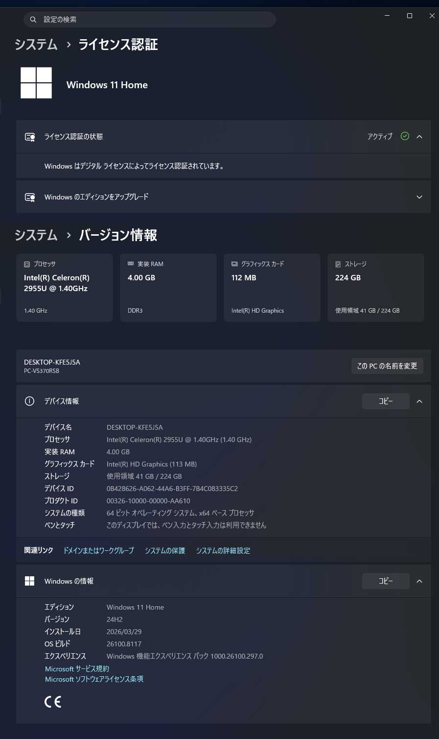 【中古/現状品】Office2021ProPlus Windows11Home NEC VS370/R SSD240GB Celeron 2955U 1.40GHz(2コア)/メモリ4GB DVD-RAM 收藏
