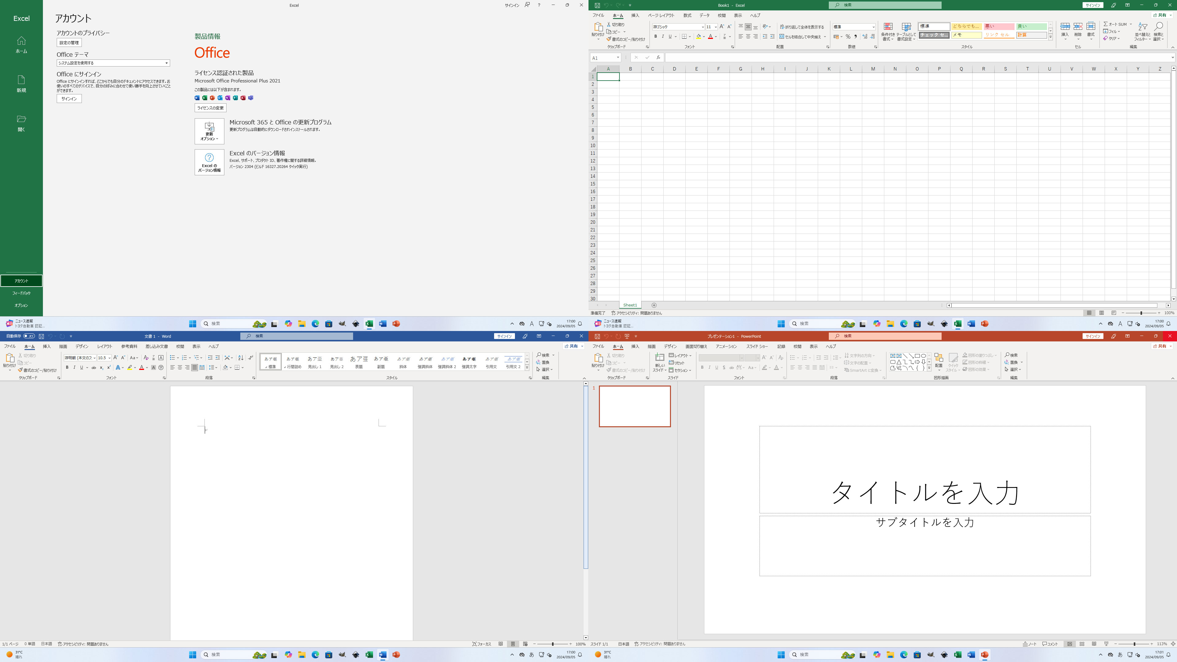 Microsoft Office2021ProPlusインストール、ライセンス認証済みです。文書作成、表計算、プレゼン資料の作成などができます。