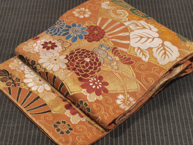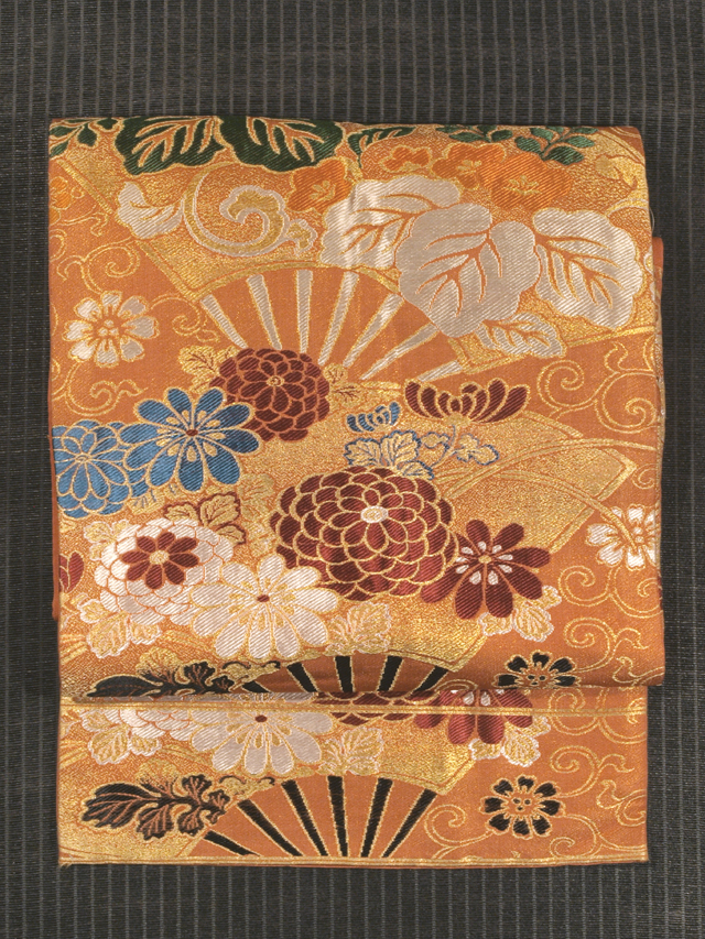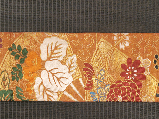 【アンティーク】花唐草に草花扇文 西陣織 名古屋帯 TAKC02003風楽 |