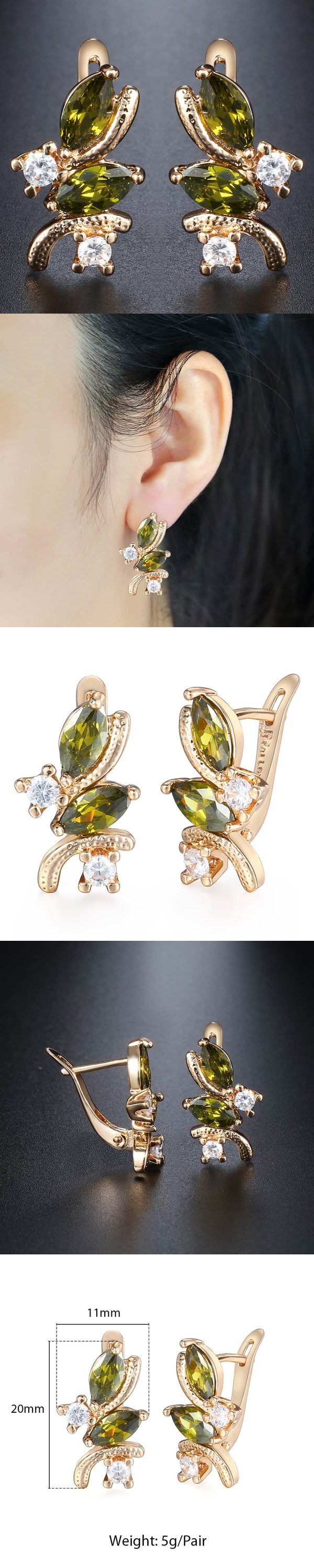 ピアス キュービックジルコニア ローズゴールド ファッション ジュエリー 結婚式 クリア 緑 グリーン パーティー オバール スナップ 收藏