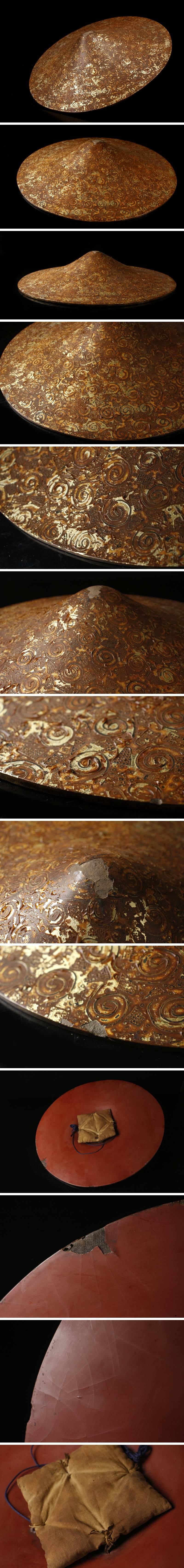 【LIG】時代武具 漆塗 渦巻文変り塗陣笠 内朱塗 平笠 甲冑 2511117 收藏
