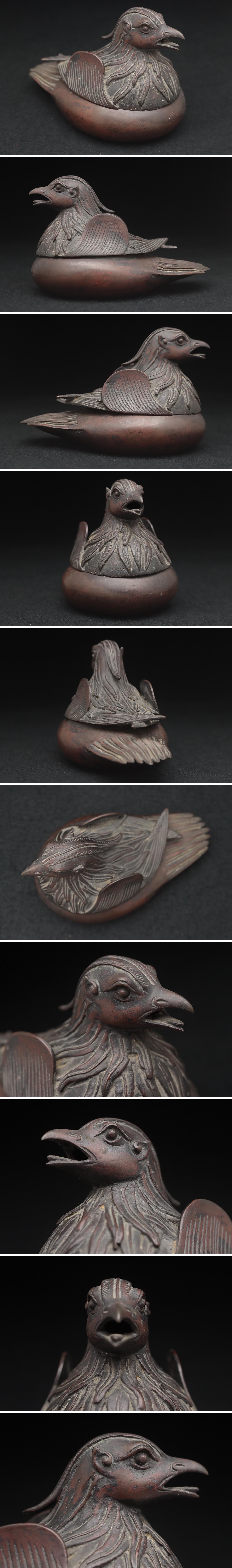 | ◆ 時代 古銅「鴛鴦」香炉 幅14.5cm・銅臥鳥香炉・水禽香薫炉・鳳凰香炉 古金工 茶道具 香道具 古美術 ◆