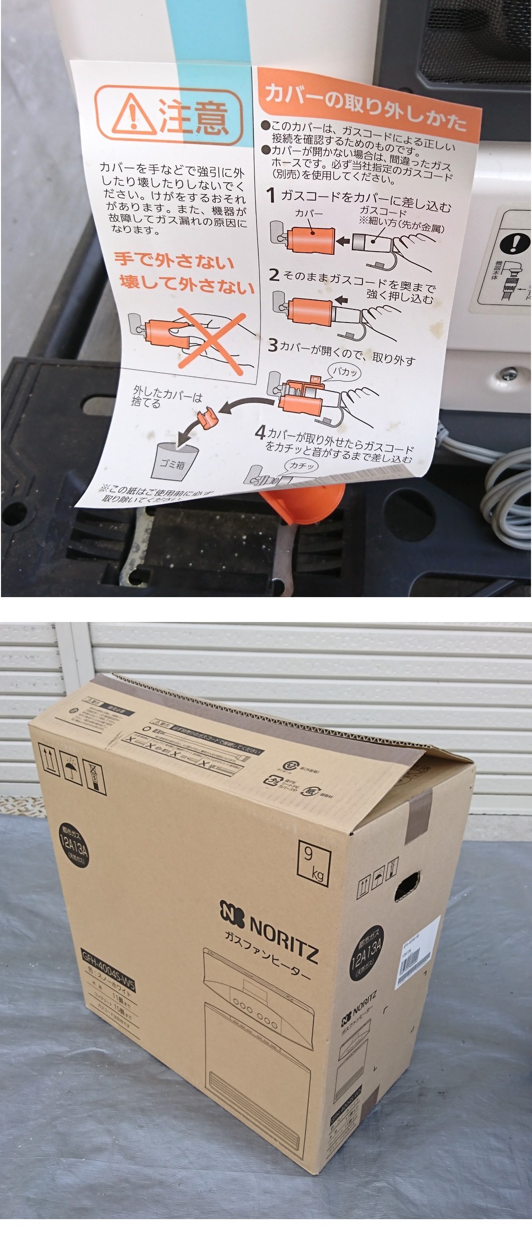 未使用!NORITZ ガスファンヒーター GFH-4004S-W5 都市ガス用 ノーリツ スノーホワイト 取扱説明書 ガスコード付き 暖房器具を出品します。