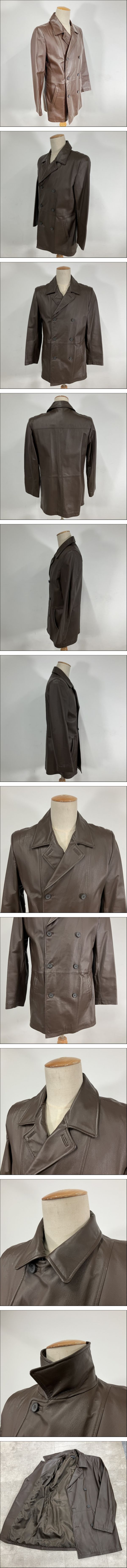 ■【美品】Bay Leaf ブラウン レザー ダブルコート ピッグレザー 豚革 コート ジャケット Lサイズ_JFX_D0127-F00F 收藏