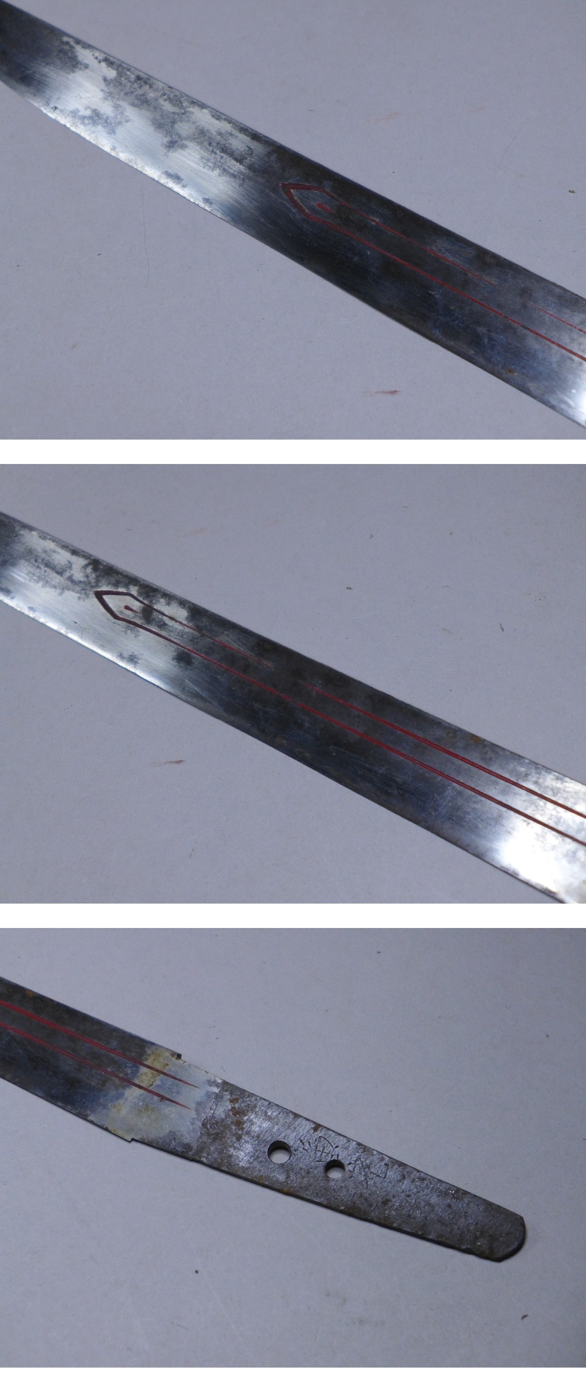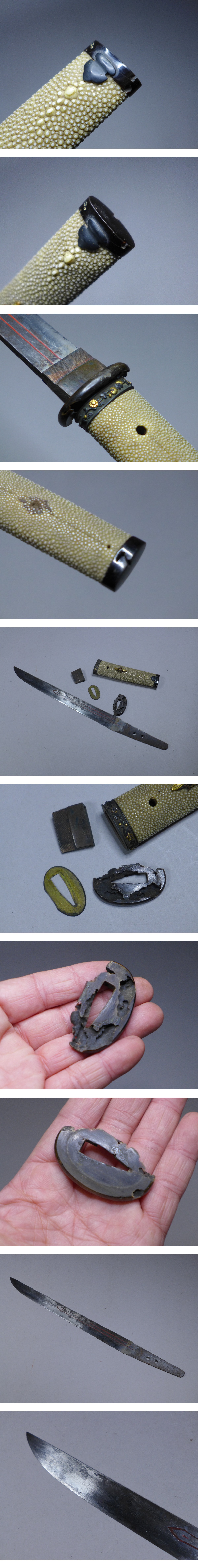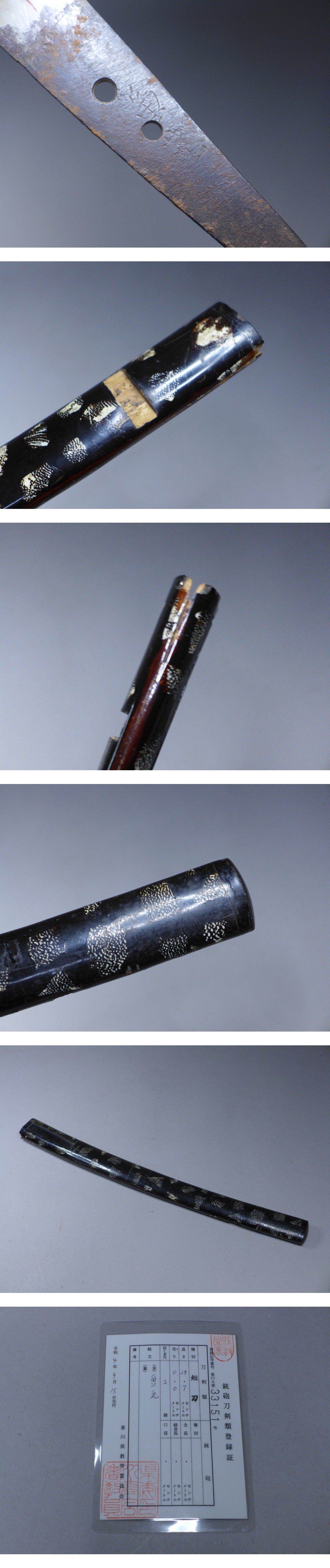 詳細サイズは画像の登録証をご覧下さい。元巾:約30mm。元重:約6・2mm。刀身重量:約227g。キズなどあり。当方このような物に詳しくない為に詳細などは分かりかねます。状態は画像参照でお願いします。ご了承の上お願いします。★★★落札者は、落札して購入後、銃砲刀剣類所持等取締法に もとづき都道府県の教育委員会に所有者変更の届出が必要です。★★★★★★★★★★★★★★★★★★★★★★★★★最近、悪質な入札者が多く非常に迷惑をしております。新規IDや「非常に悪い・悪い」の評価の多い方の入札はお断りさせて頂きます。 仮に入札があった場合でも、発見次第入札を削除させて頂く場合がございます(判断基準は弊社判断によります事予めご了承下さい。