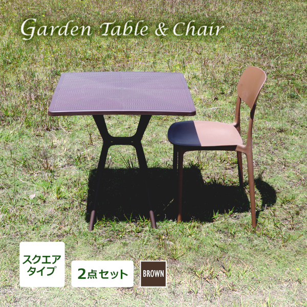 送料無料 プラスチックチェア ガーデンチェア ガーデンテーブル 2点セット UVカット ブラウン スクエアテーブル 1脚 軽量 ポリプロピレン 收藏