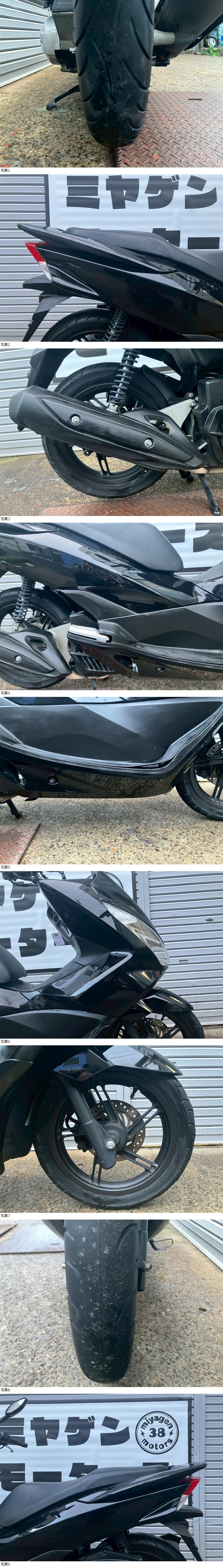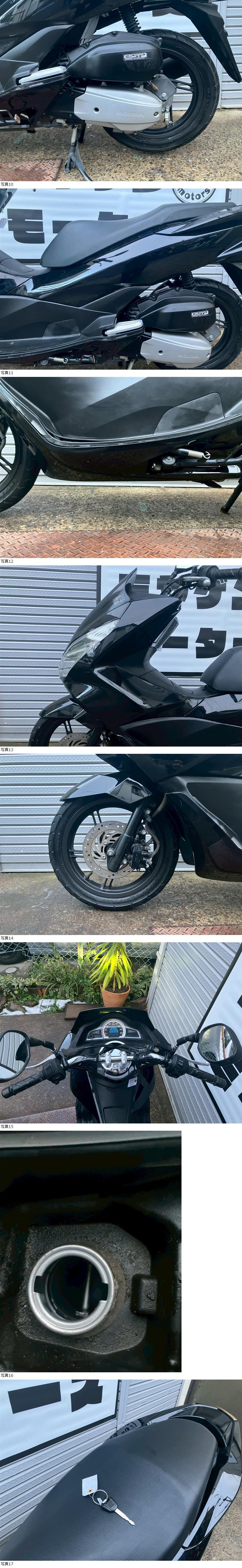 | 商品説明 | この度は当出品車両をご覧頂きまして誠に有難う御座います。 他にも複数台出品がございますので宜しければご覧ください! ご入札頂けた際には文末にありますお取引詳細にご同意頂けたものとさせて頂きます。 下記車両詳細・お取引詳細になりますので必ずご一読くださいませ! また、直接お越しいただいた方にその場で販売することもあるため予告なしに出品の取り消し等をする場合も御座います。 よって、落札前には一言コメント欄にてご一報頂けますと幸いです。予めご了承下さい。 〜〜車両詳細〜〜 メーカー:ホンダ 車種:PCX125 年式:2016年式 色:黒 鍵:純正キー1本 排気量:125㏄ 走行距離:21,224㎞ 燃料供給装置:インジェクション フレームNo:JF56-1102**** 別途 5500円で販売証明書発行致します お気軽にお問合せ下さい。 ・外観 PCX125 2016年モデルが入荷いたしました☆ 綺麗な外観で好印象♪ シートの張替え済みです! ・エンジンセルにて始動O K! 吹け上がり良好! 確認箇所は以下となります。 スピードメーター:作動OK! ヘッドライト:ハイロー点灯! ウィンカー:前後左右点灯! テール:尾灯・ブレーキ共に点灯! ナンバー灯:点灯! ホーン:作動OK! ★別途部品交換受け付けます! ・タイヤ前後交換など!詳細は直接お問い合わせくださいませ! エンジンオイル・タイヤ交換など! 詳細は直接お問い合わせくださいませ! *上記ご利用の際は部品の在庫状況によりお引き渡しまでにお時間を頂戴する場合が御座います。 〜〜お取引詳細〜〜 ※ご注意ください※ 出品車両はあくまで現状販売となります。走行点検などは行っておりません。 良好・好印象などの表記に関しても車両の状態を確実に保証するものではなく 細かい程度の差なども含めあくまで当方の主観でありますこと重々ご承知置き下さい。 特別に気になる箇所など(外観に限ります)がある場合は直接ご相談ください。 ご指定いただきました箇所のお写真を添付をさせていただきます。 (あまりにも多い場合はご対応致しかねます。) 上記を踏まえまして現車の確認は大歓迎です。 細かい箇所など気になる方は是非とも現車確認を行ってください! (予約制となりますので直接お問い合わせください。) 一般の二輪販売店と同様の点検・整備は行っておりません。 車両に関する一切の保証等も御座いませんので自走でのお引き取りはお断り致します。 ある程度の知識があり落札後にご自身で整備の出来る方、或いは整備工場等にて分解整備を別途検討できる方、メンテナンスベースとしての使用などの落札を推奨しております。 明記してあること以外の確認はしておらず、また致しかねます。 目視できる消耗品以外のパーツに関しましても寿命のわからぬものなど御座います。 (中古品ですのでつい先程まで正常に作動していたにも関わらずお受け取りの際に状態の変化などある場合も十分御座います。例・電子機器、ワイヤー類など) 再三にはなりますが如何なる場合もお引き渡し後のキャンセル・クレームはお受け致しかねます。 現状販売というものを重々ご理解の上ノークレーム・ノーリターンでよろしくお願い致します。 原則キャンセルはお受け致しかねますが、止むを得ず落札者様都合でキャンセルされる場合には 落札金額の1割をキャンセル費用として頂戴させて頂きます。 上記取引内容に不安を感じられる方には二輪販売店等の整備・保証付き車両のご購入を強くお勧め致します。 ★直接引き取り・即引き取り大歓迎! 直接引き取りの場合、落札から1週間以内にお引き取り下さい。 それ以降日割りにて2,200円を別途頂戴させて頂きます。 *部品交換をご依頼の方は完成のご連絡から1週間以内となります。 ★配送OK! 主に配送業者に委託しております。ご自身で手配いただいても結構です。 レッドラインの金額を参考にしておりますのでお手数ですが費用に関しましては落札者様にて直接HPでご確認下さい。 発送元は埼玉県川口市となります。ご購入から配送までの目安は関東近郊で1〜2週間程度となるかと思います。(地域、期間により大幅に異なりますので納期が気になる方は直接レッドラインへお問い合わせ下さい。) 関東近郊の場合割増でお早めにお届けできる場合も御座いますので一度ご相談下さいませ!(対象外となる場合も御座います。) また、配送の場合もお取置き等の対応は致しかねますので落札後は速やかに配送依頼の手続きを行わせて頂きます。 ★車両のみの販売となりますので必要な場合のみ別途5,500円にて販売証明書の発行・発送を受け賜ります! ★新規アカウントの方、落札者様の評価内容によりましては、ご入札頂いても当方の判断で削除する場合がございます。予めご了承下さい。 ★落札後、24時間以内にお客様情報のご入力・落札代金のお支払いがいただけない方のお取引はキャンセルとさせていただきます。(お支払いに関しましては、どうしてもの場合大幅な期間でなければある程度ご相談にのらせていただきます。) 予めご了承くださ