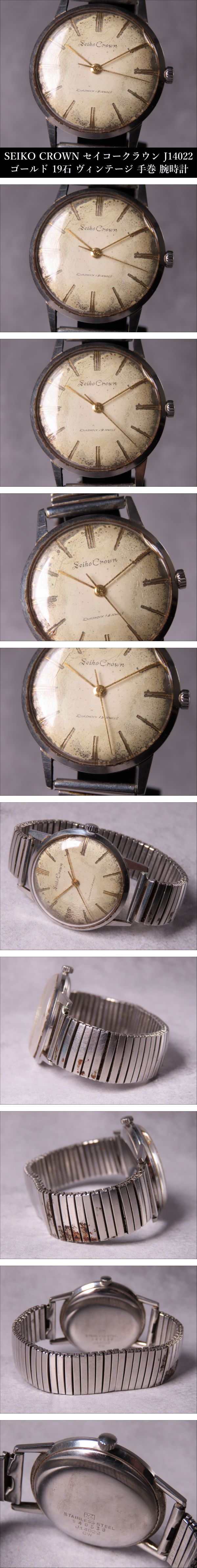 【ONES】SEIKO CROWN セイコークラウン J14022 ゴールド 19石 ヴィンテージ 手巻 メンズ腕時計 動作品 收藏