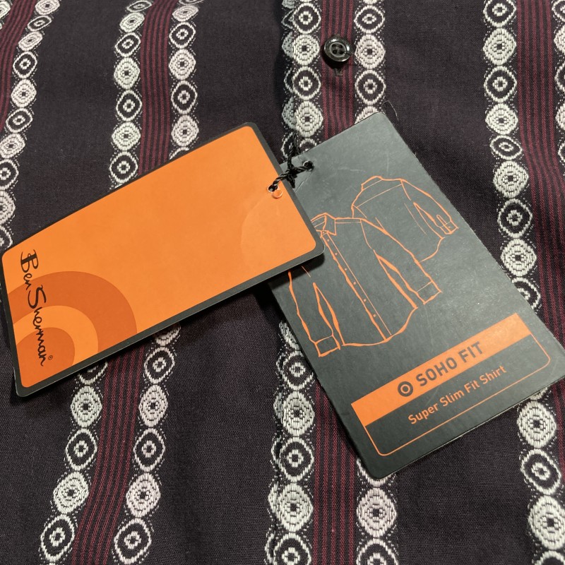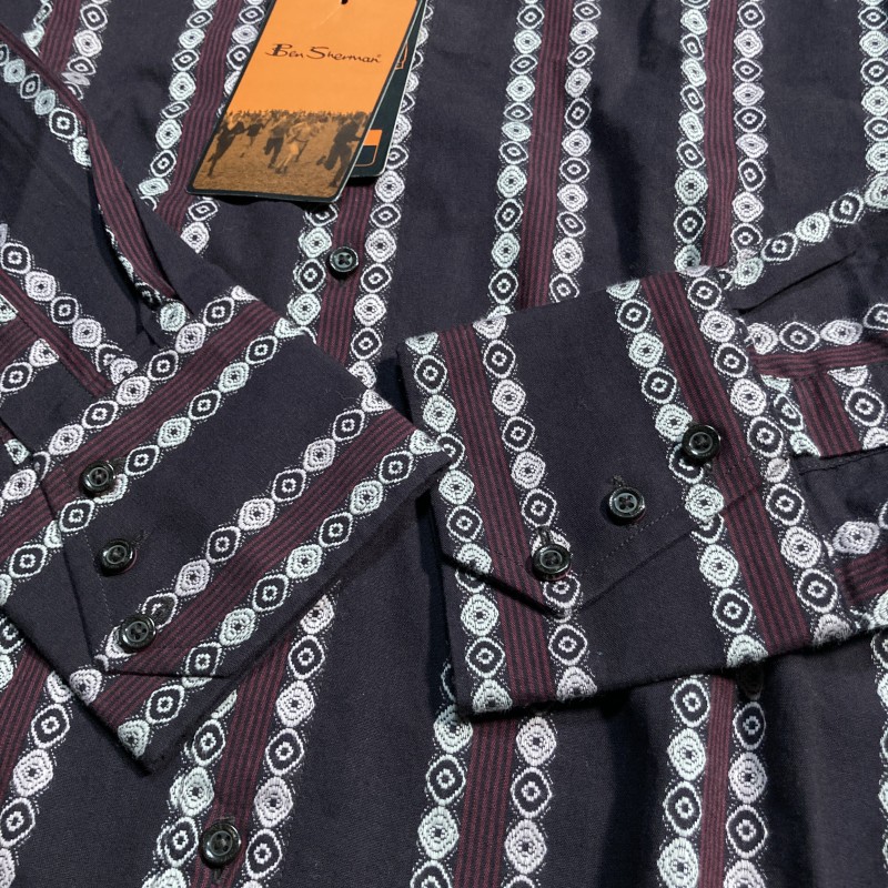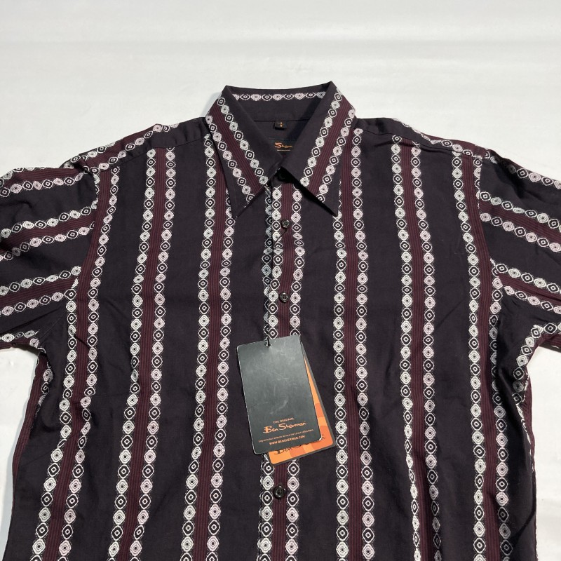 Ben Sherman★未使用タグ付★UKモッズ&パンクロック★ストライプ&小紋柄 長袖シャツ 幾何学エスニック M ベンシャーマン バンドマンに◎ 收藏