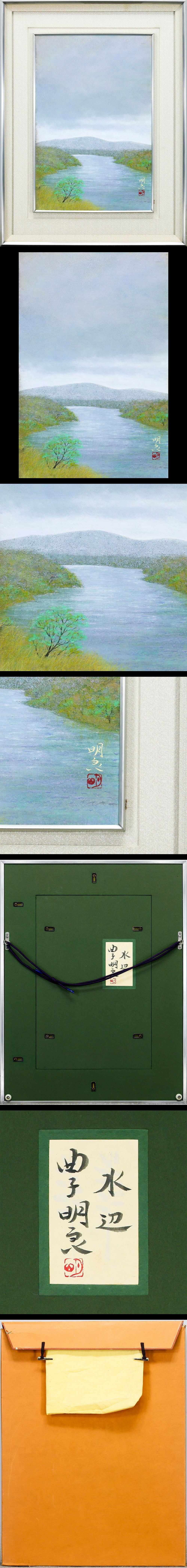 【真作】【WISH】曲子明良「水辺」日本画 6号 金落款 共シール ◆静謐に広がる清らかな川 〇日展会員 宝塚造形芸術大学教授 #26023223 收藏