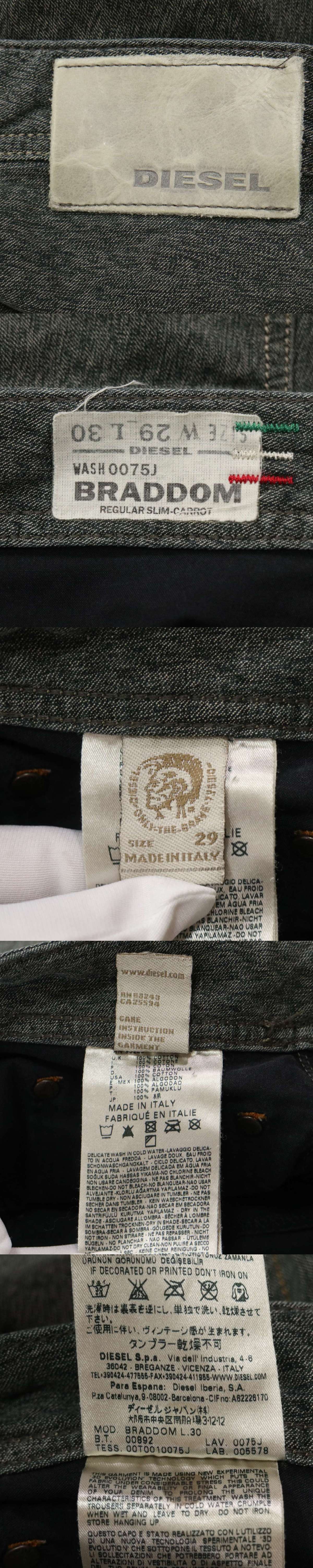 イタリア製★ DIESEL ディーゼル 【BRADDOM 0075J】 ダメージ加工 スリム キャロット デニム パンツ ジーンズ Sz.29 メンズ 收藏