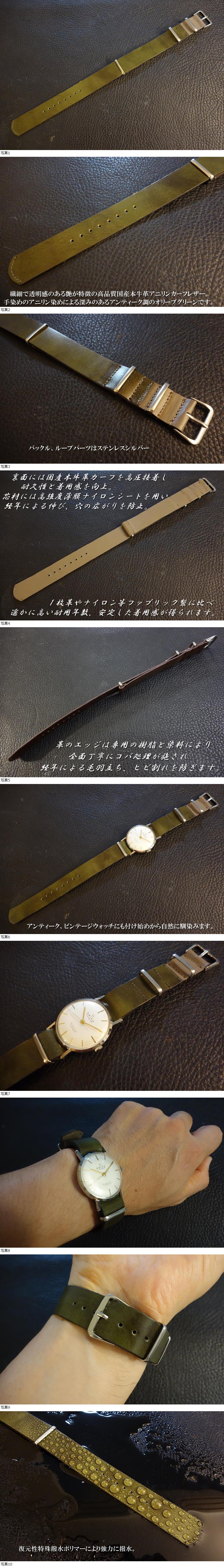 | ◆Leather NATO G10Strap◆高品質国産本牛革アニリンカーフ カスタムオーダー(ラグ幅/バックルカラー) OLIVE GREEN 受注製作(納期10日前後) 日本製 |