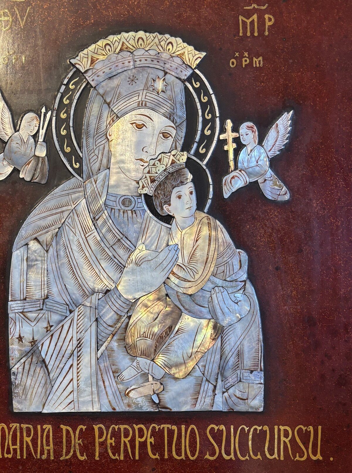 S.MARIA DE PERPETUO SUCCURSU.常に助けを与える聖母マリアイエスキリスト天使貝細工の絵額縁入り