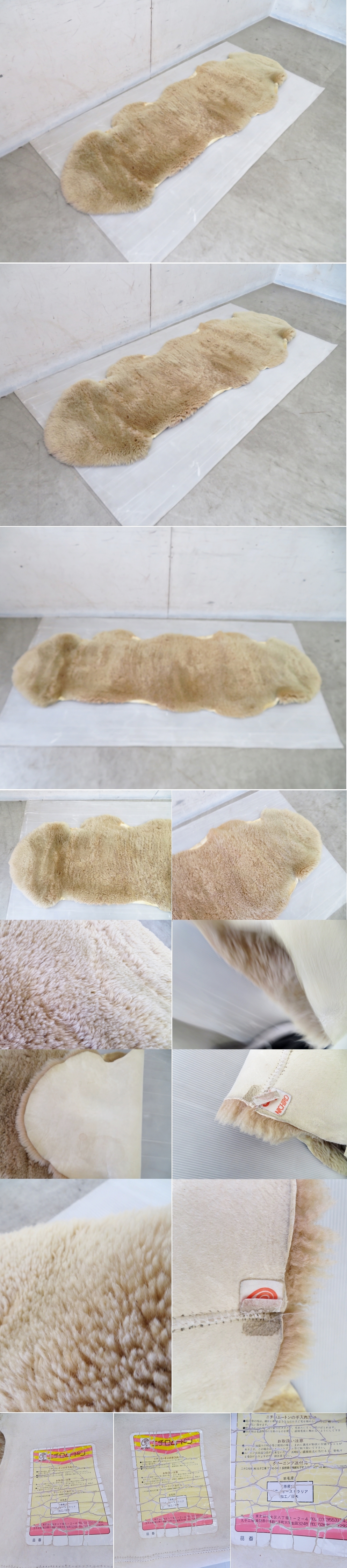 ■P686■美品■天然ムートン■ニチロムートン■ベージュ■ムートンラグマット■大判■モダン■高級■天然羊毛■毛皮■185×63cm 收藏
