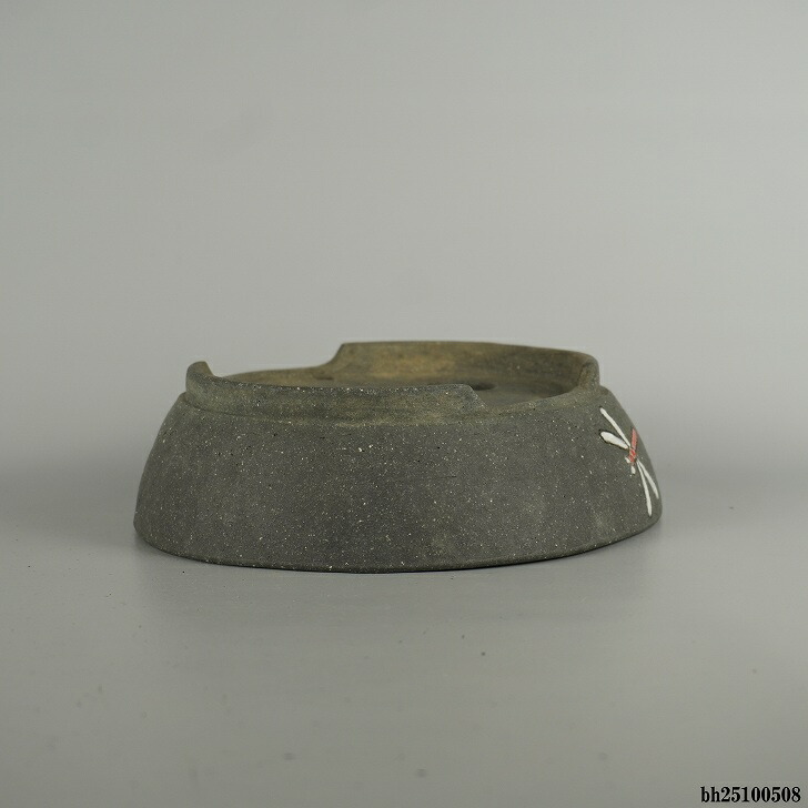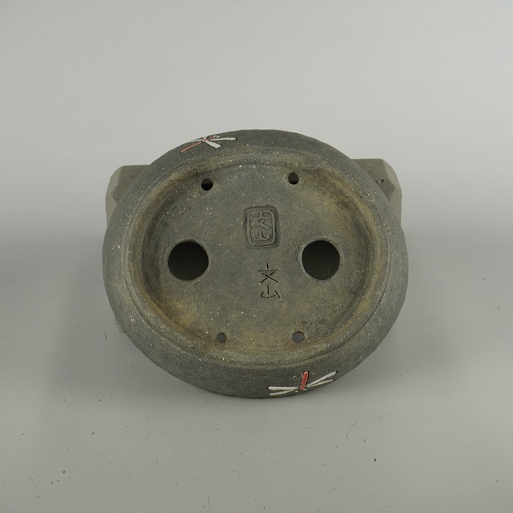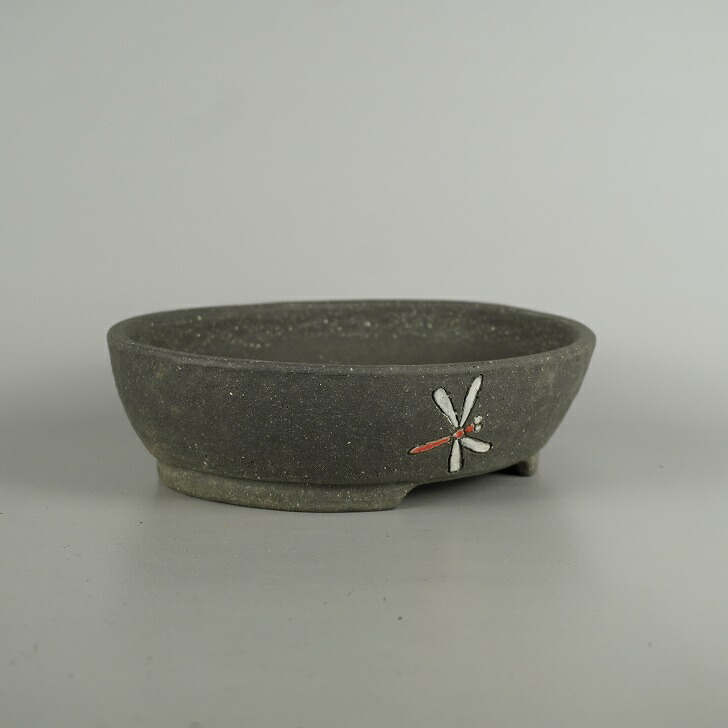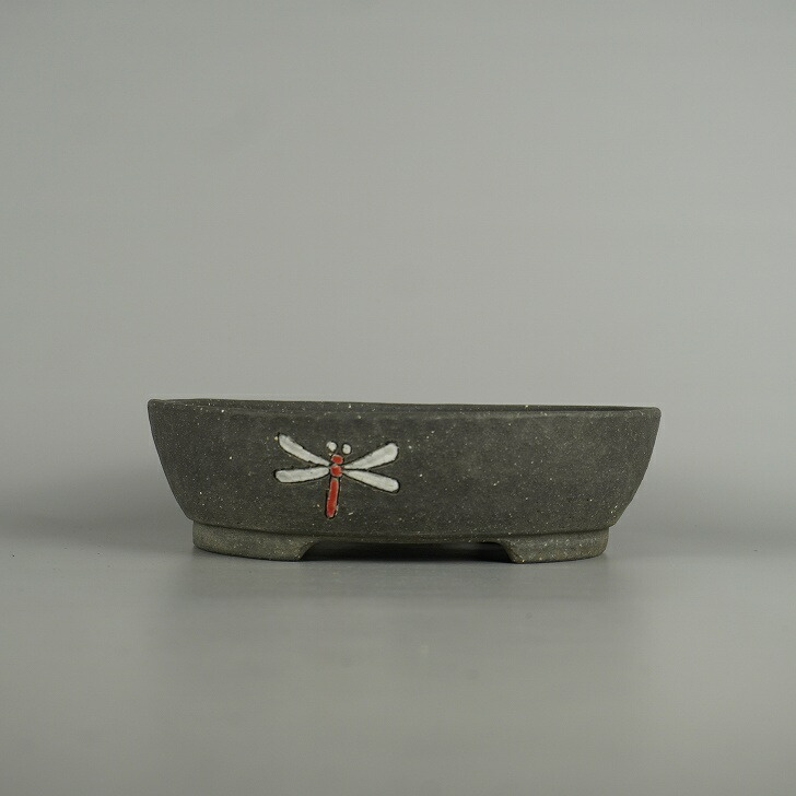 盆栽鉢 文山 越前文山 中型 長辺 約 21cm 鯖江園芸 楕円鉢 色絵 蜻蛉 とんぼ トンボ 泥物 鑑賞 観賞用 現品 新品 收藏