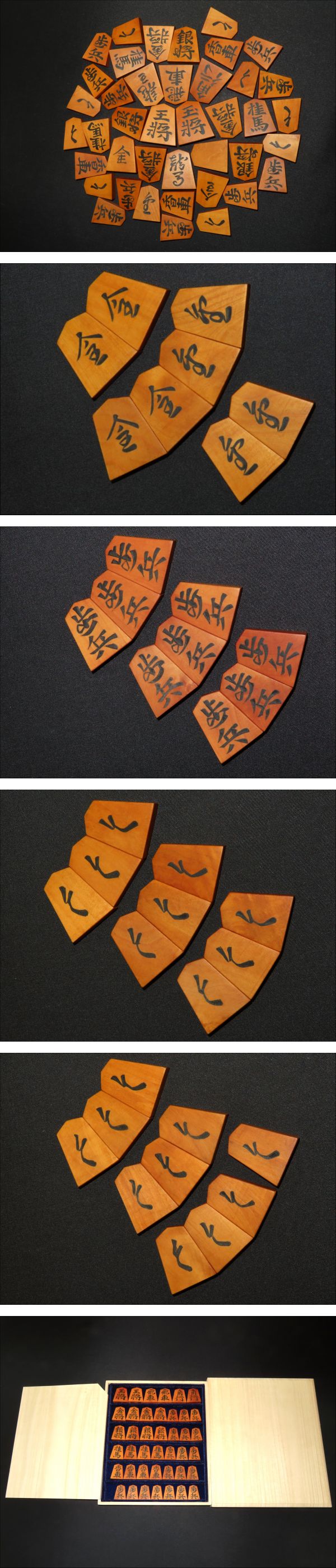 木地は薩摩黄楊。全ての駒の表裏をUPいたしましたので是非ご覧ください。