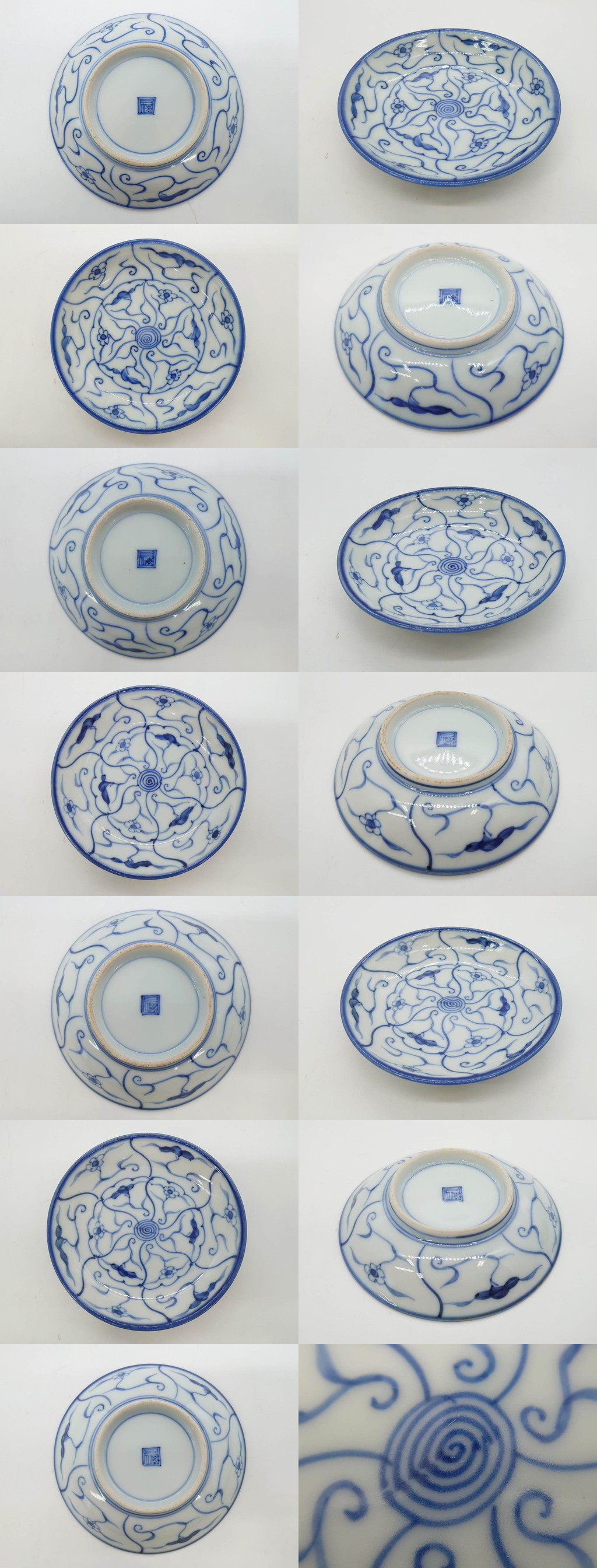 R-082231 江戸~明治期 古伊万里 染付 なずな文 約11cm 3.5寸 上品な雰囲気の小皿5枚セット(和皿、和食器、裏印、三寸五分) 收藏