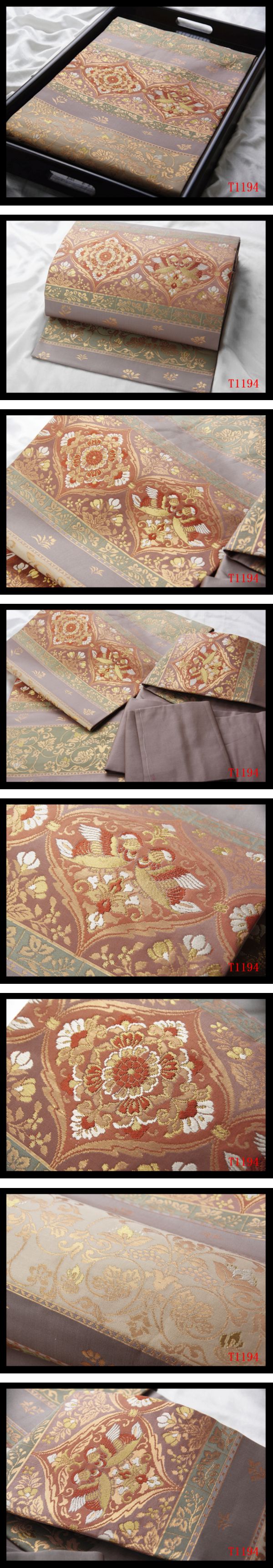 蔵【T1194】西陣逸品 正倉院花鳥古典紋 鳩羽色地 気品豊かに 正絹純金糸高級美術名古屋帯 ◇検簪着物袋帯和装小物帯締め 收藏