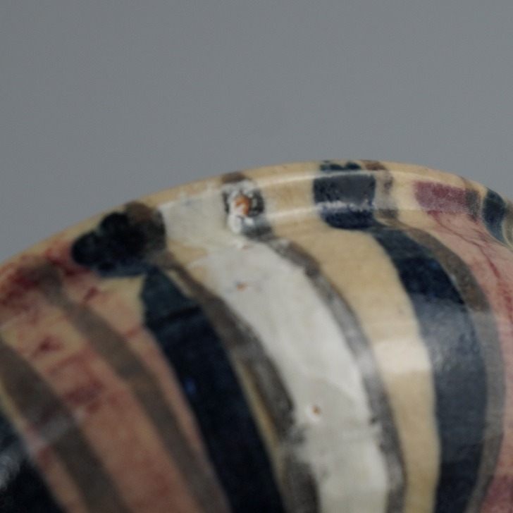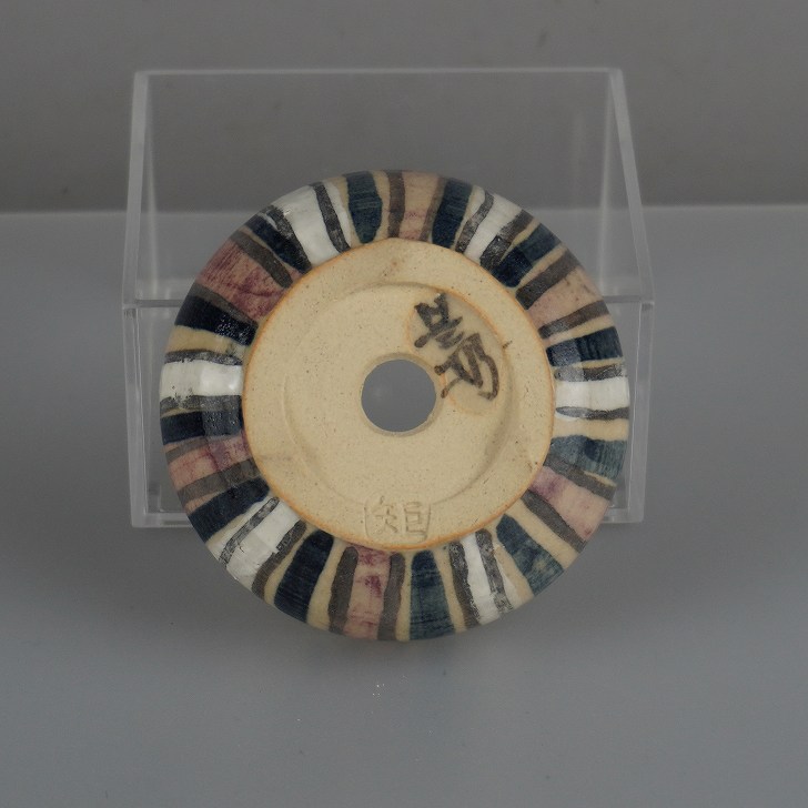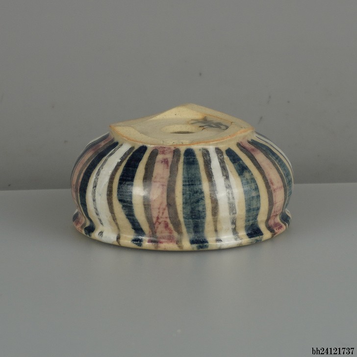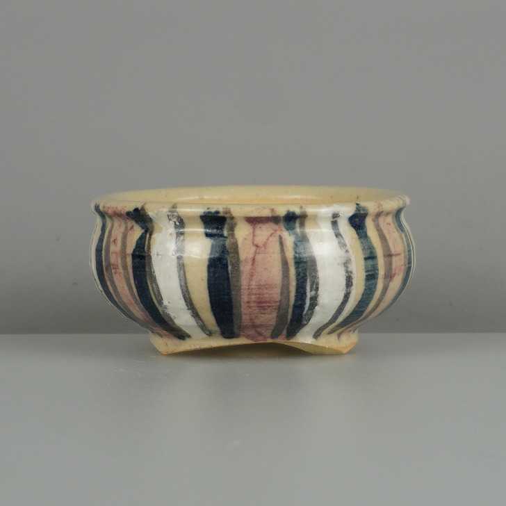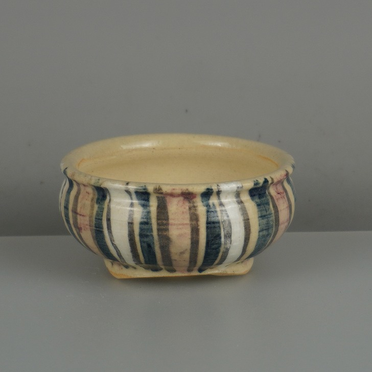 盆栽鉢 是好 矩 小鉢 長辺 約 6.7cm 丸鉢 色絵 縦縞 縞 模様 鑑賞 観賞用 現品 新品 收藏