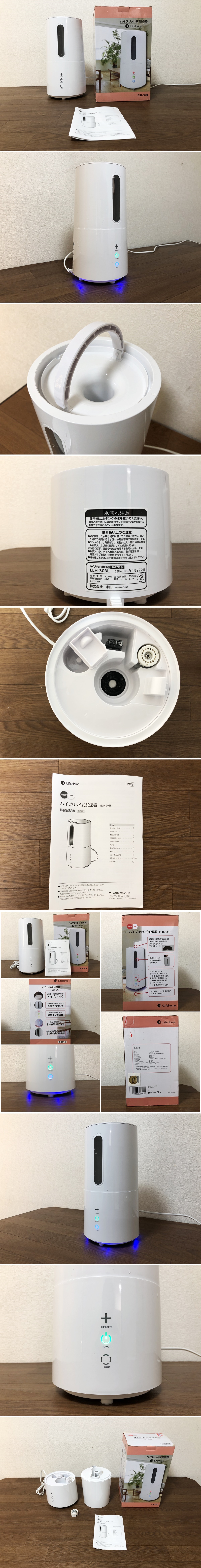 ハイブリット式加湿器 e-LifeHOME ELH303L ホワイト 木造和室5畳/プレハブ洋室8畳 タッチ操作LED照明付き 收藏