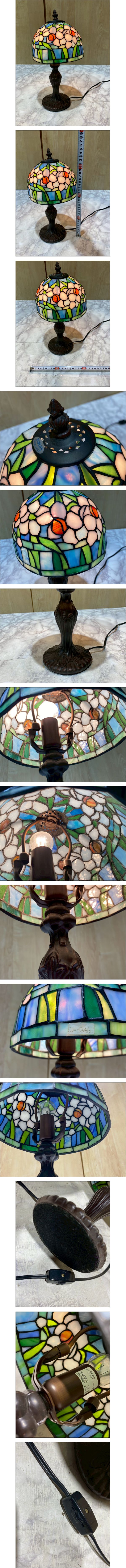 【39-26】ヴィンテージ ステンドランプ ステンドグラス アンティーク 花柄 レトロ 照明 オシャレ 長期保管品 中古品 收藏