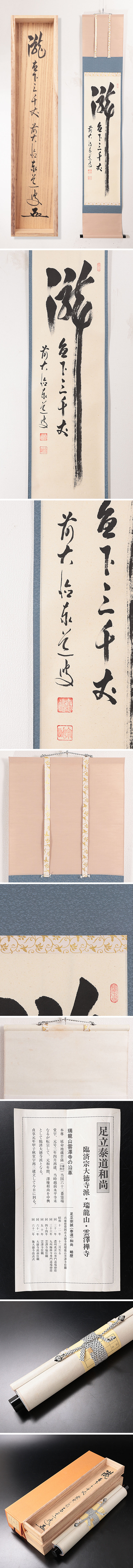 【古美味】足立泰道 自筆一行書「瀧直下三千丈」軸装 茶道具 保証品 IqJ1 收藏