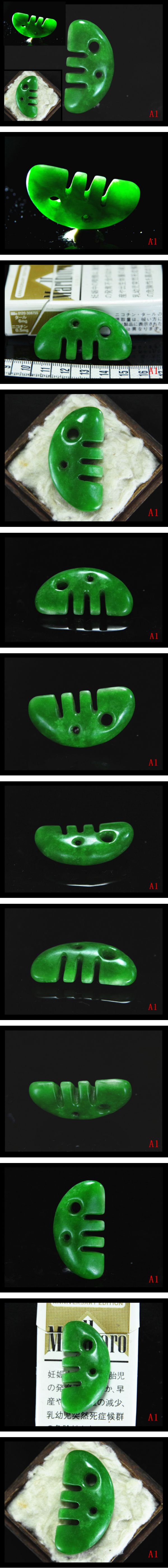 【A1】透光性姿形抜群味わい深い濃翠緑色 ★極上ろうかん質硬玉翡翠製★特大櫛形異状勾玉★検★縄文弥生須恵出土器土偶祭祀具仏像法具原石 收藏