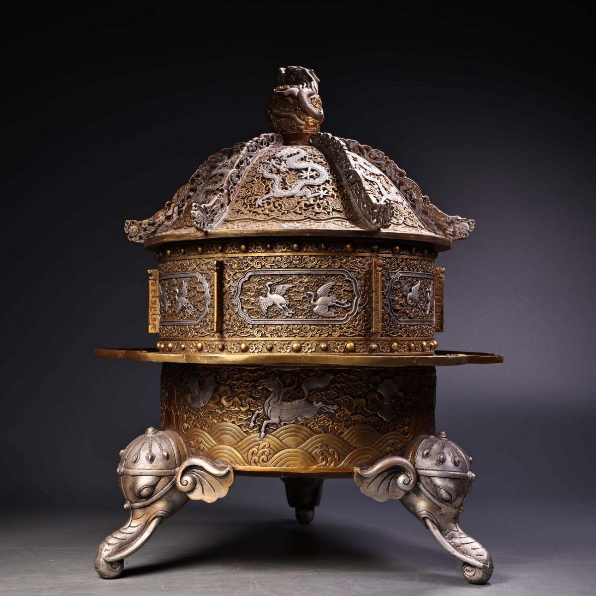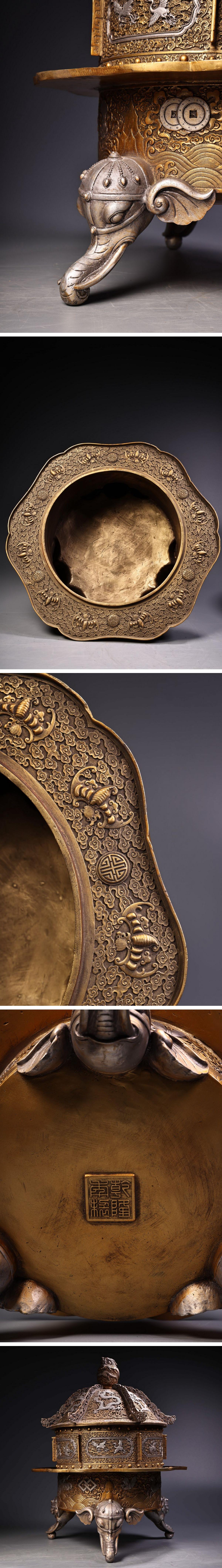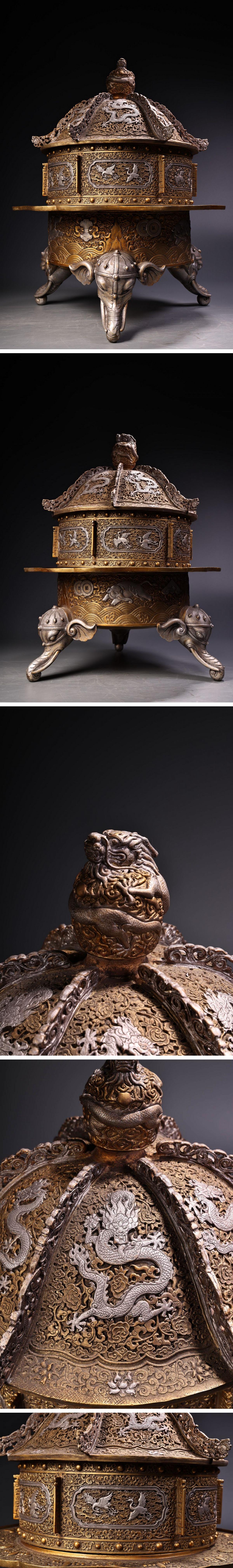 【清】関西某オークション購入 中国・清時代 泥金 九龍紋薫炉 極細工 古置物 古擺件 中国古美術7L12-WN7