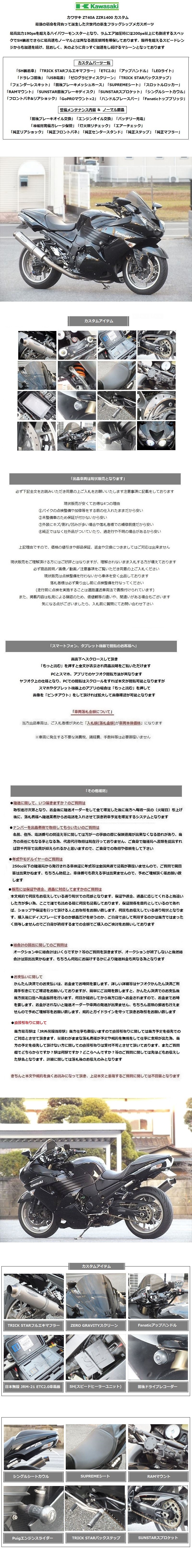 ZXT40A 「ZZR1400」「SHスピードヒーラー TRICK STARマフラー&バックステップ ETC2.0 ドラレコ サンスターローター&スプロケ ハンドル」 收藏