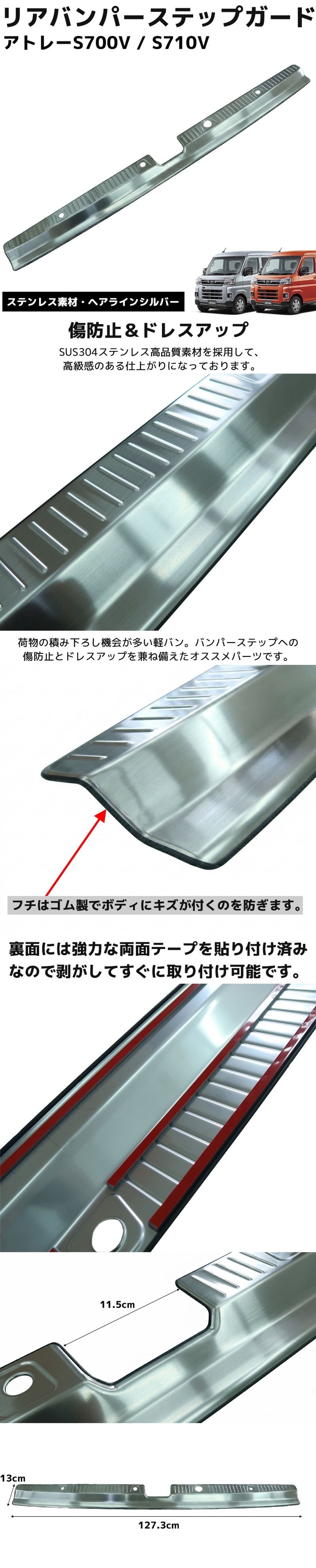 ダイハツ アトレー ハイゼットカーゴ S700V S710V リアバンパー ステップガード ラゲッジガード リア ガード カバーガーニッシュ HI-49SL 收藏