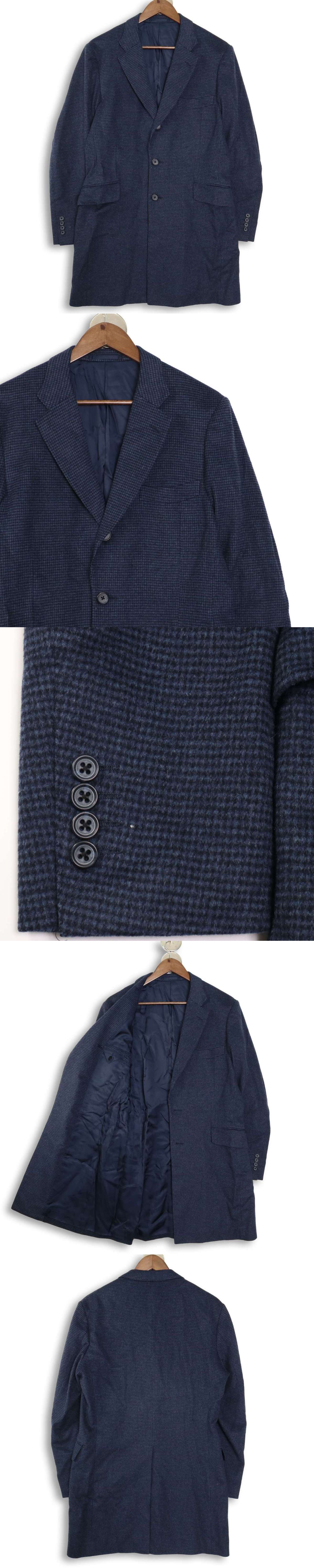 NOLLEYS ノーリーズ 秋冬 ウール カシミヤ混★ 千鳥柄 チェスター コート Sz.46 メンズ 紺 收藏