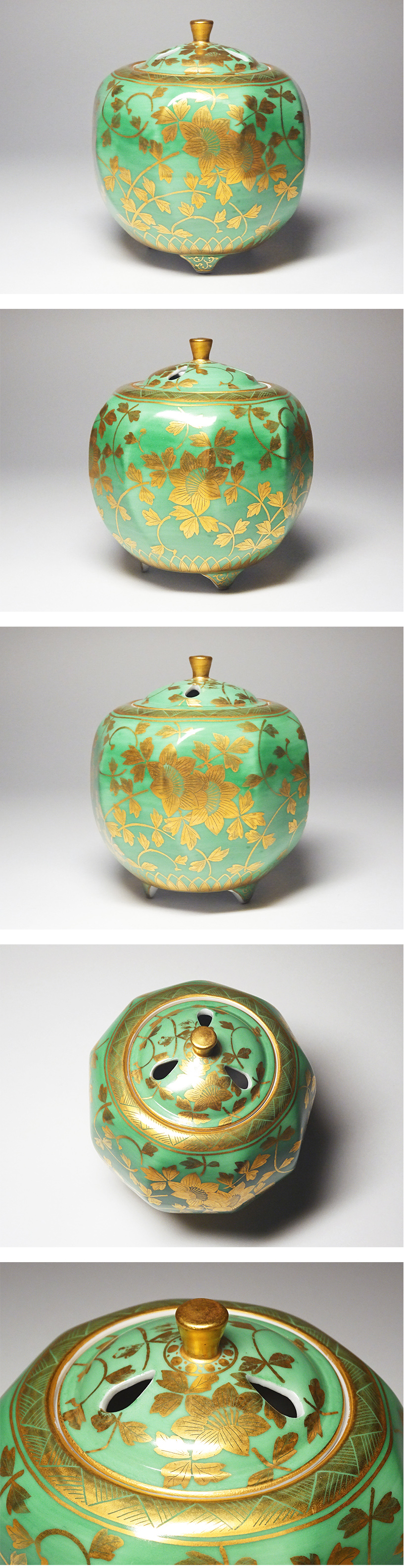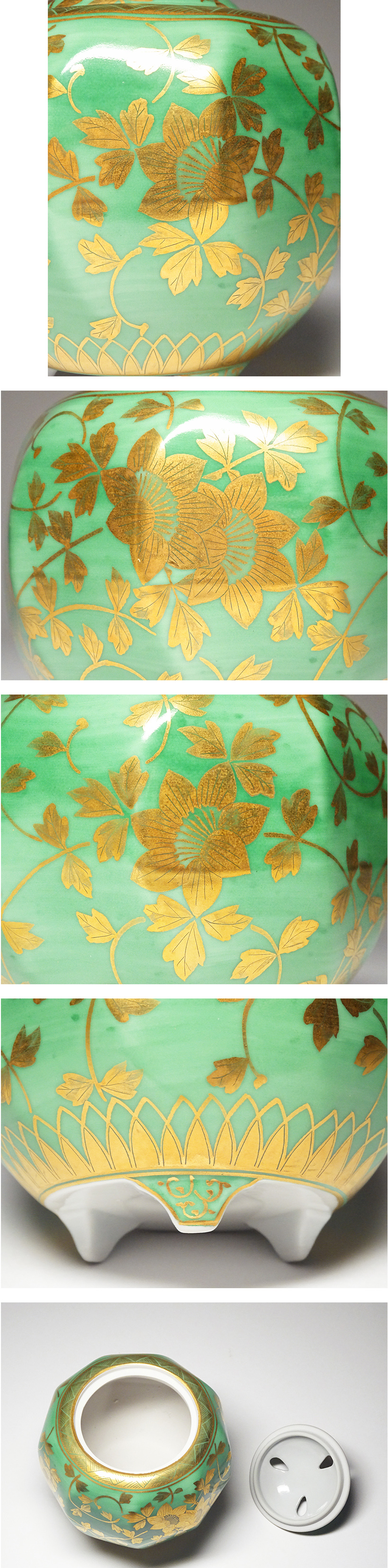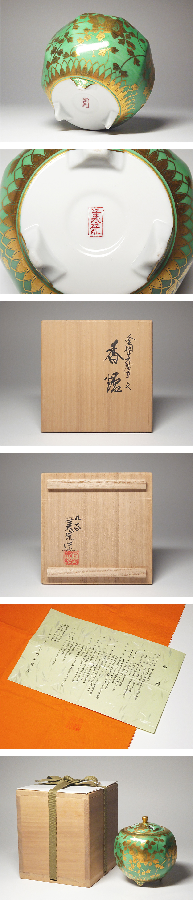 慶應◆人間国宝【吉田美統】造 金襴手 花唐草文香炉 共箱付 完全未使用品 收藏